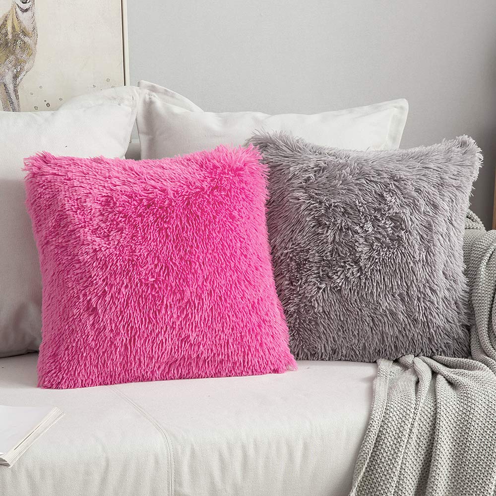 Miulee Pack Of 2 Luxury Faux Fur Throw Pillow Cover Deluxe Decorative Winter Plush Pillow Case Cushion Cover Shell For Sofa Bedroom Car 16 X 16 Inch Hot Pink