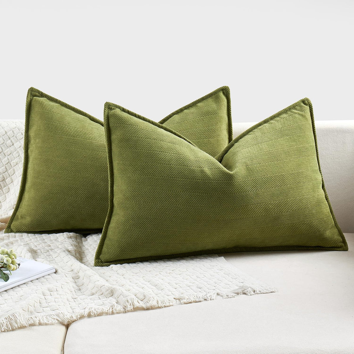 Miulee Pack Of 2 Moss Green Decorative Lumbar Pillow Covers 12X20 Inch Soft Chenille Luxurious Couch Throw Pillows Farmhouse Cushion Covers With Elegant Design For Sofa Bedroom Living Room Home Decor