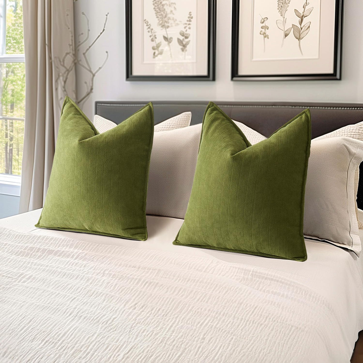 Miulee Pack Of 2 Moss Green Decorative Pillow Covers 20X20 Inch Soft Chenille Luxurious Couch Throw Pillows Farmhouse Cushion Covers With Elegant Design For Sofa Bedroom Living Room Home Decor