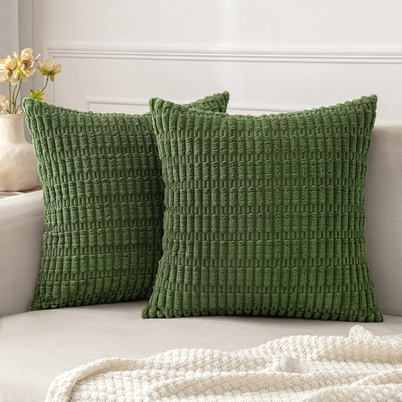 Miulee Pack Of 2 Moss Green Throw Pillow Covers 24X24 Inch Corduroy Decorative Couch Pillow Covers Soft Boho Striped Pillow Cove