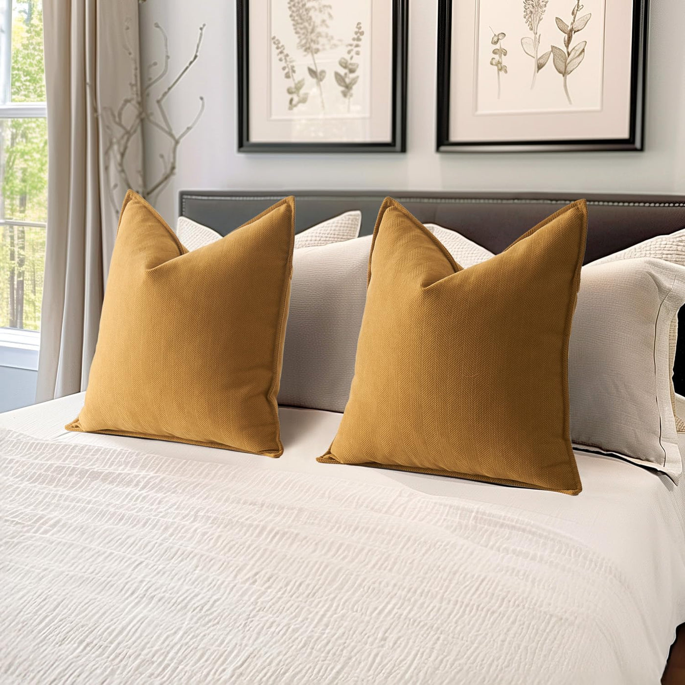 Miulee Pack Of 2 Mustard Yellow Decorative Pillow Covers 18X18 Inch Soft Chenille Luxurious Couch Throw Pillows Farmhouse Cushion Covers With Elegant Design For Sofa Bedroom Living Room Home Decor