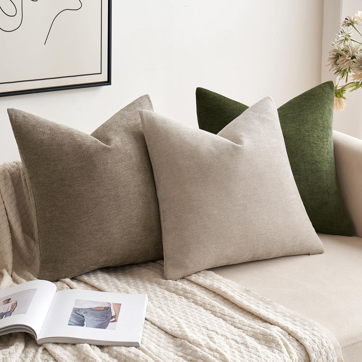 Miulee Pack Of 2 Olive Green Decorative Pillow Covers 18X18 Inch Soft Chenille Couch Throw Pillows Farmhouse Cushion Covers For Home Decor Sofa Bedroom Living Room
