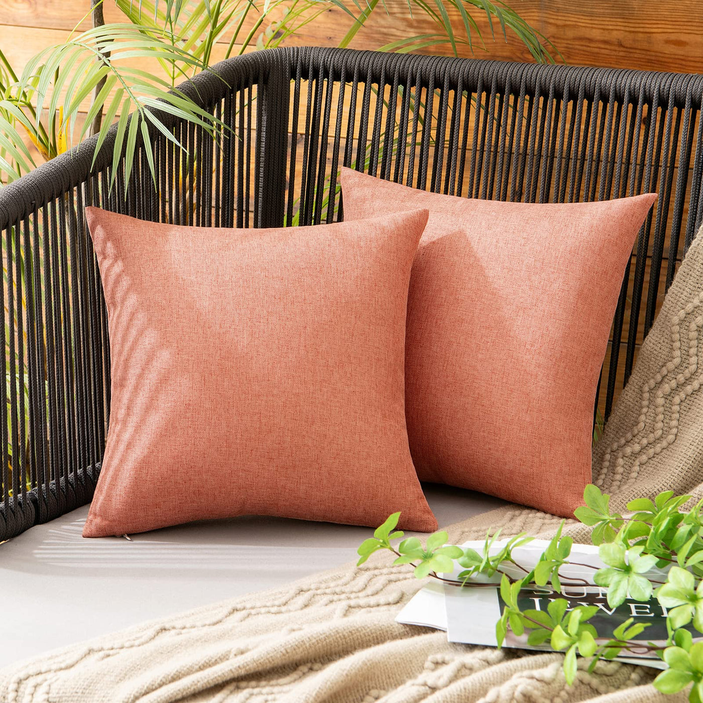Miulee Pack Of 2 Outdoor Waterproof Throw Pillow Covers Decorative Solid Polyester Linen Garden Farmhouse Cushion Cases For Pati