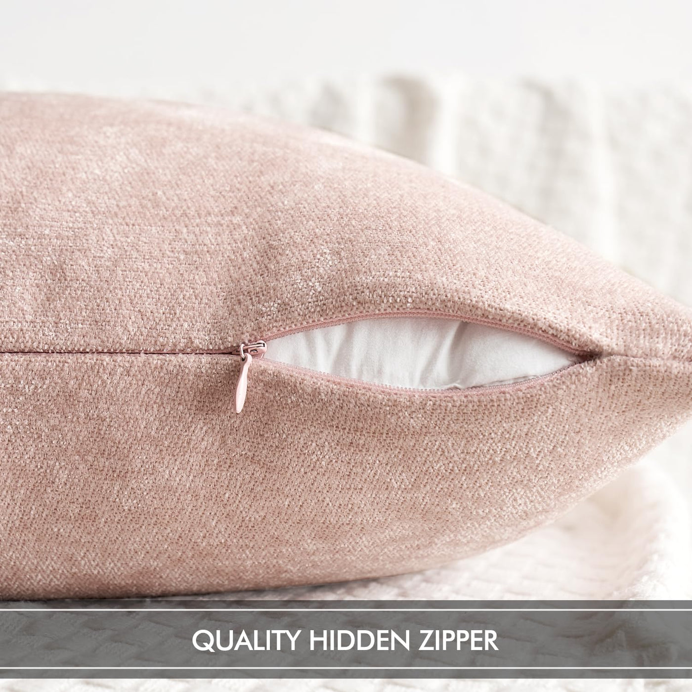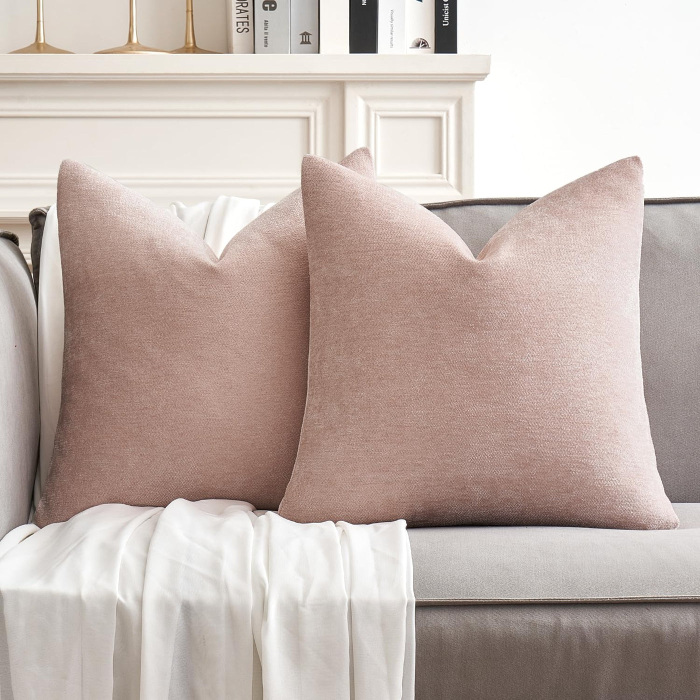 Miulee Pack Of 2 Pink Decorative Pillow Covers 18X18 Inch Soft Chenille Couch Spring Throw Pillows Farmhouse Cushion Covers For Valentine'S Day Home Decor Sofa Bedroom Living Room