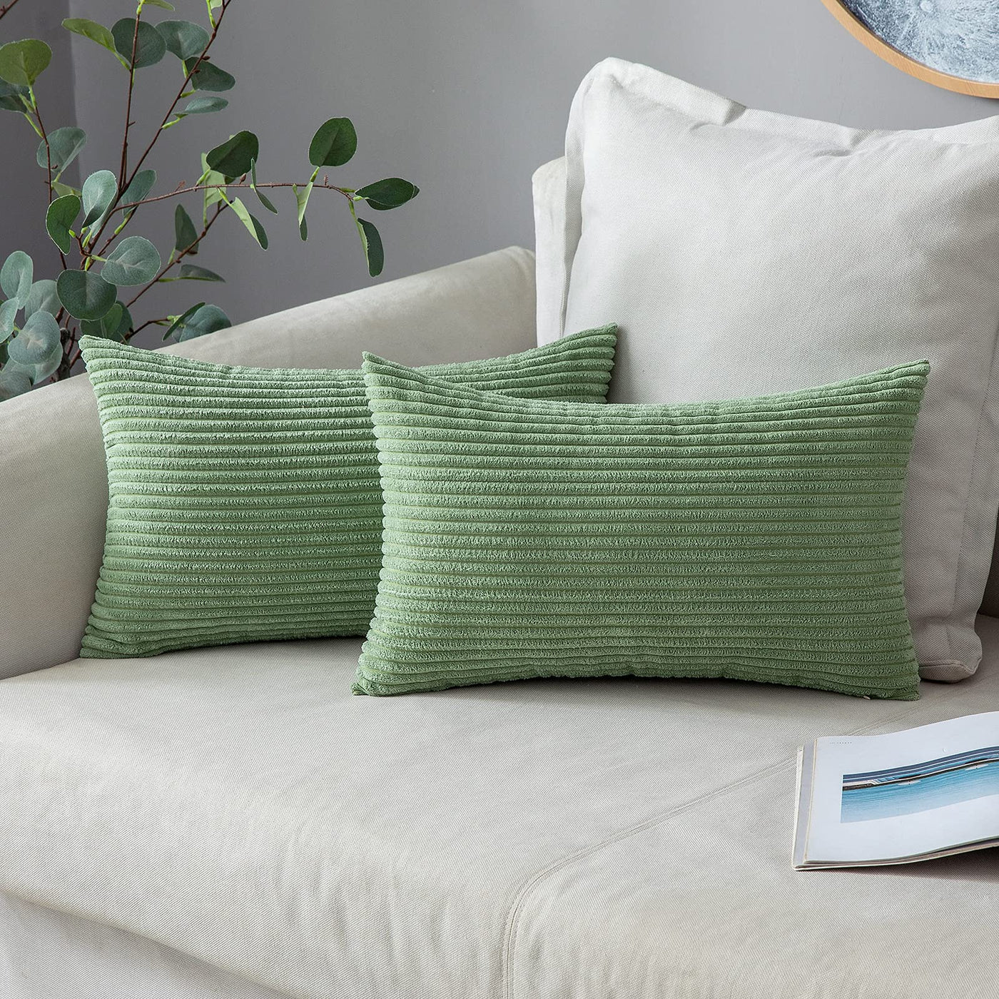 Miulee Pack Of 2 Sage Green Corduroy Pillow Covers 12 X 20 Inch Lumbar Throw Pillow Covers Pillowcases For Spring Sofa Bedroom C
