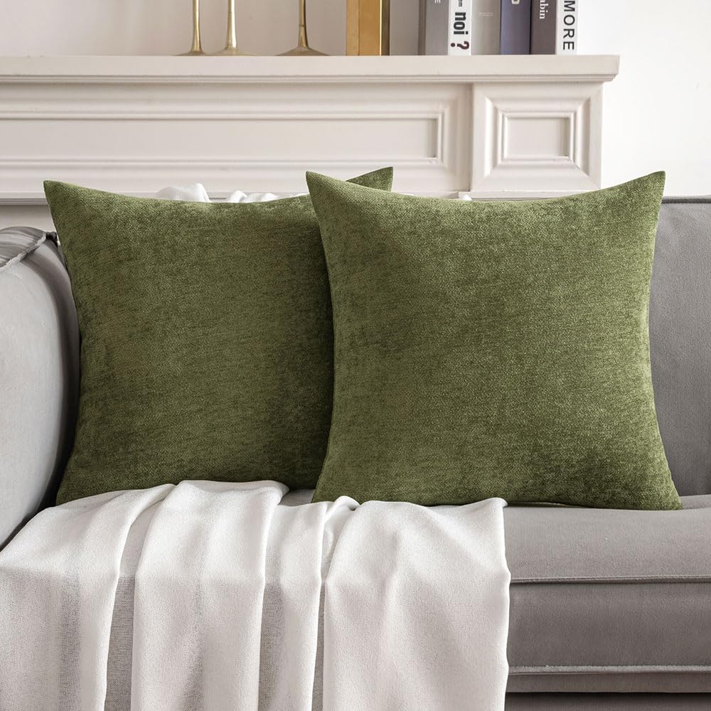 Miulee Pack Of 2 Sage Green Decorative Pillow Covers 18X18 Inch Soft Chenille Couch Spring Throw Pillows Farmhouse Cushion Covers For Home Decor Sofa Bedroom Living Room