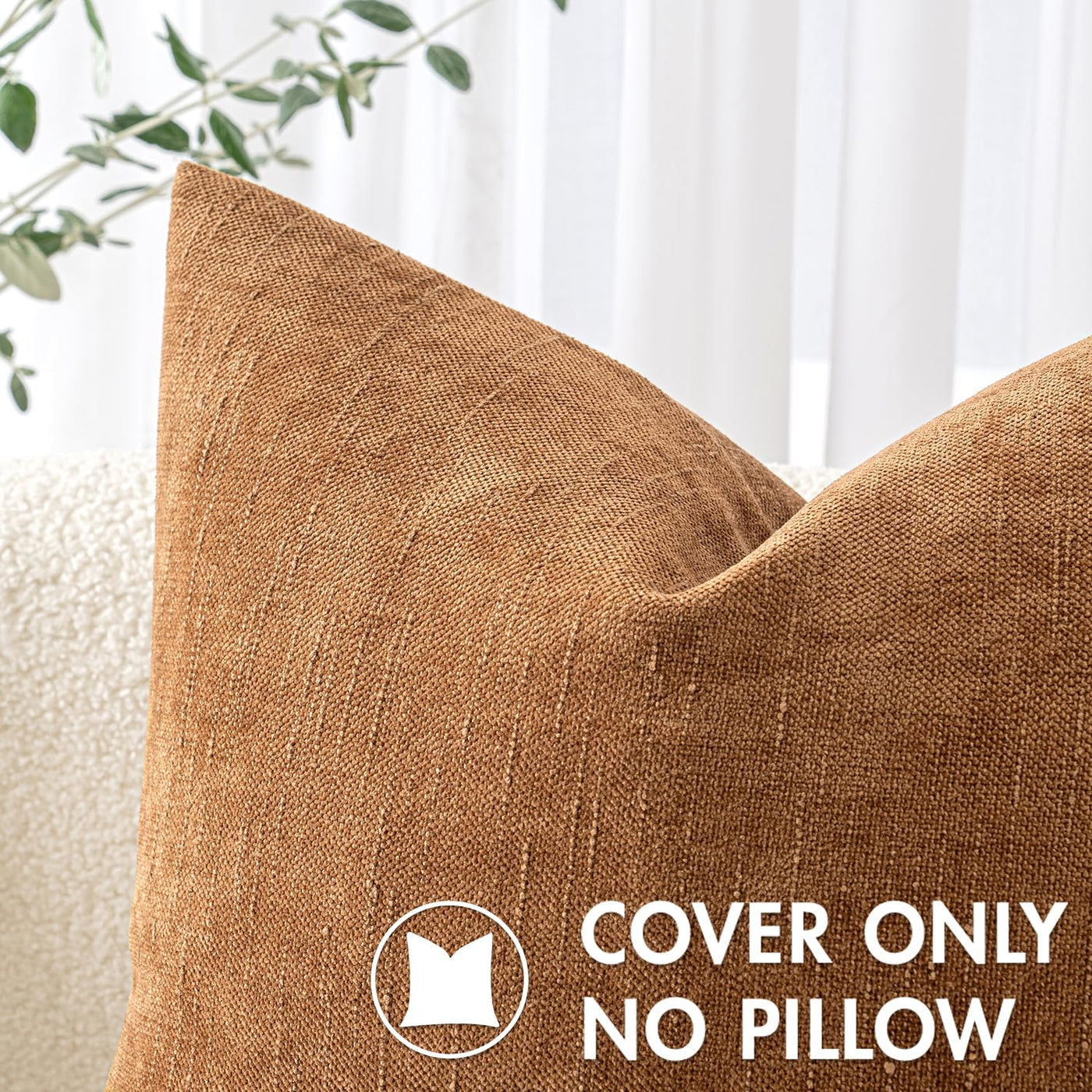 Miulee Pack Of 2 Textured Throw Pillow Covers Decorative Soft Accent Square Chenille Pillowcases Neutral Farmhouse Cushions Modern Home Decor For Couch Sofa Bedroom Living Room 20X20 Inch, Brown