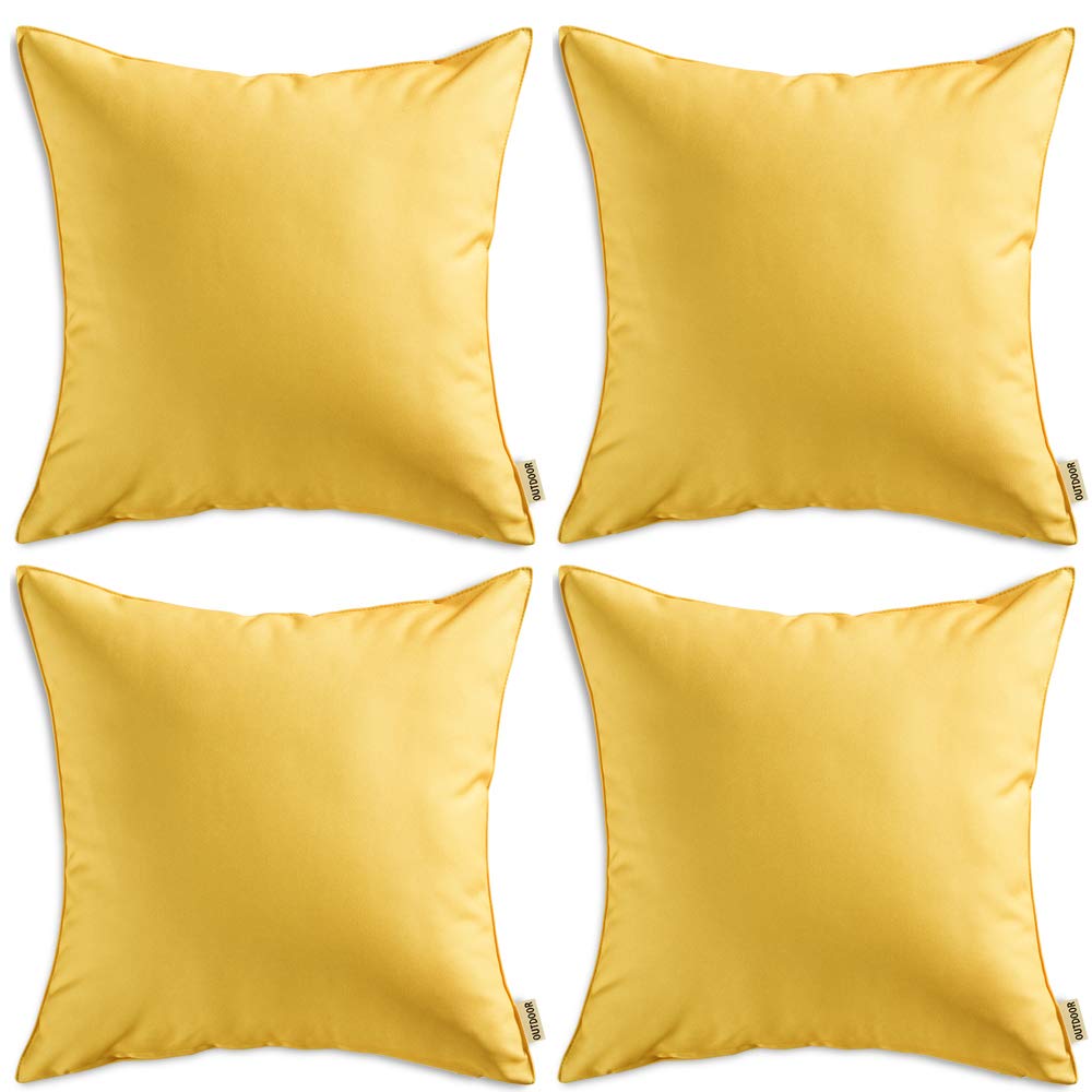 Miulee Pack Of 4 Decorative Outdoor Pillow Covers Square Cushion Cases Pu Coating Waterproof Throw Pillowcase Shell For Living Room Couch Sofa Garden Patio Tent Park 16X16 Inch Yellow