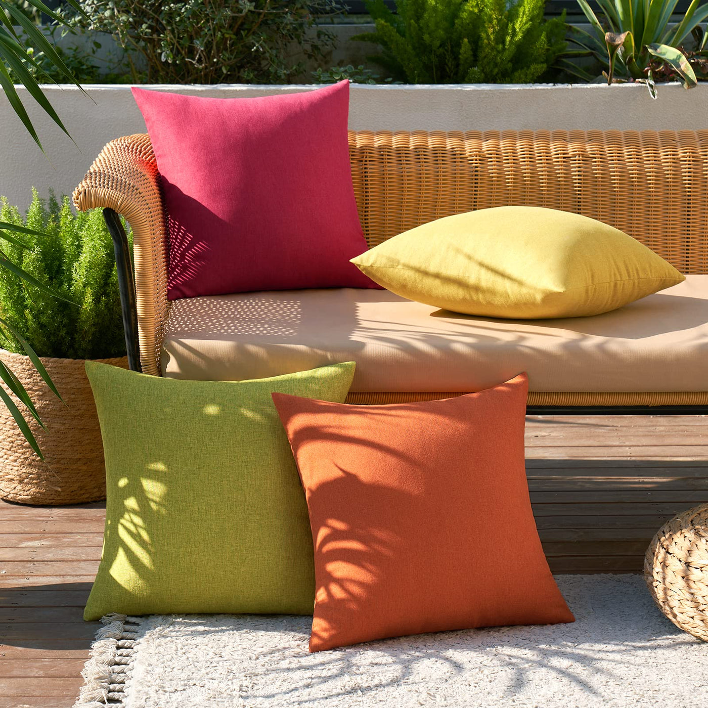 Miulee Pack Of 4 Decorative Outdoor Throw Pillow Covers Linen Waterproof Pillow Covers Farmhouse Cushion Cases For Patio Garden Tent Balcony Couch Sofa 18X18 Inch Red/Green