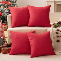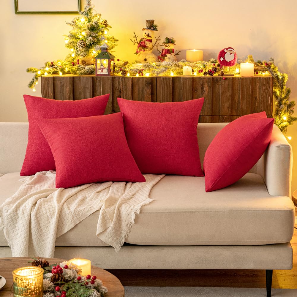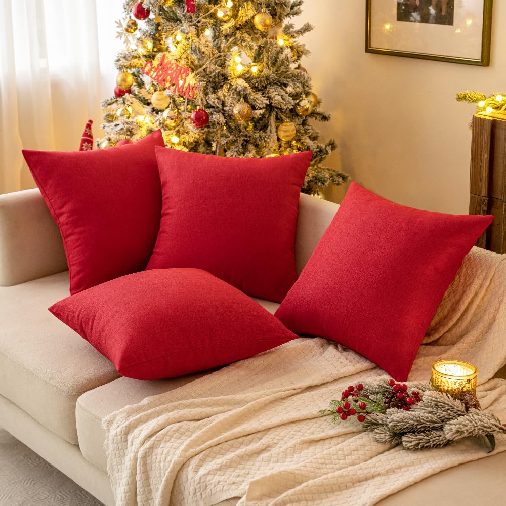 Miulee Pack Of 4 Decorative Outdoor Throw Pillow Covers Linen Waterproof Pillow Covers Farmhouse Cushion Cases For Patio Garden Tent Balcony Couch Sofa18X18 Inch Red