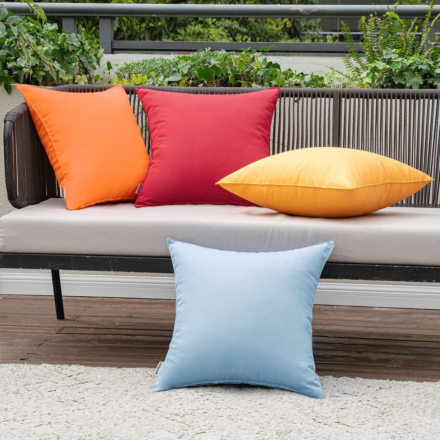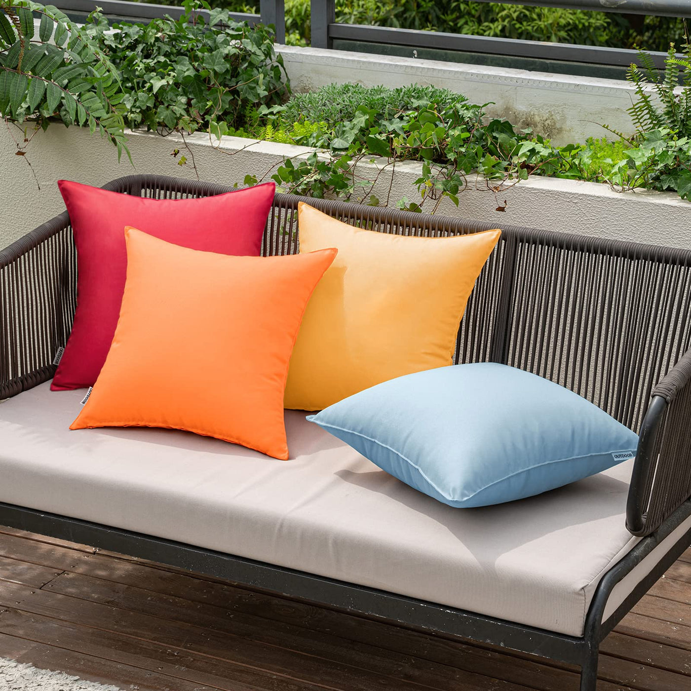 Miulee Pack Of 4 Decorative Outdoor Waterproof Pillow Covers Square Garden Cushion Cases Pu Coating Throw Pillow Cover Shell For Tent Park Couch 18X18 Inch Red/Yellow