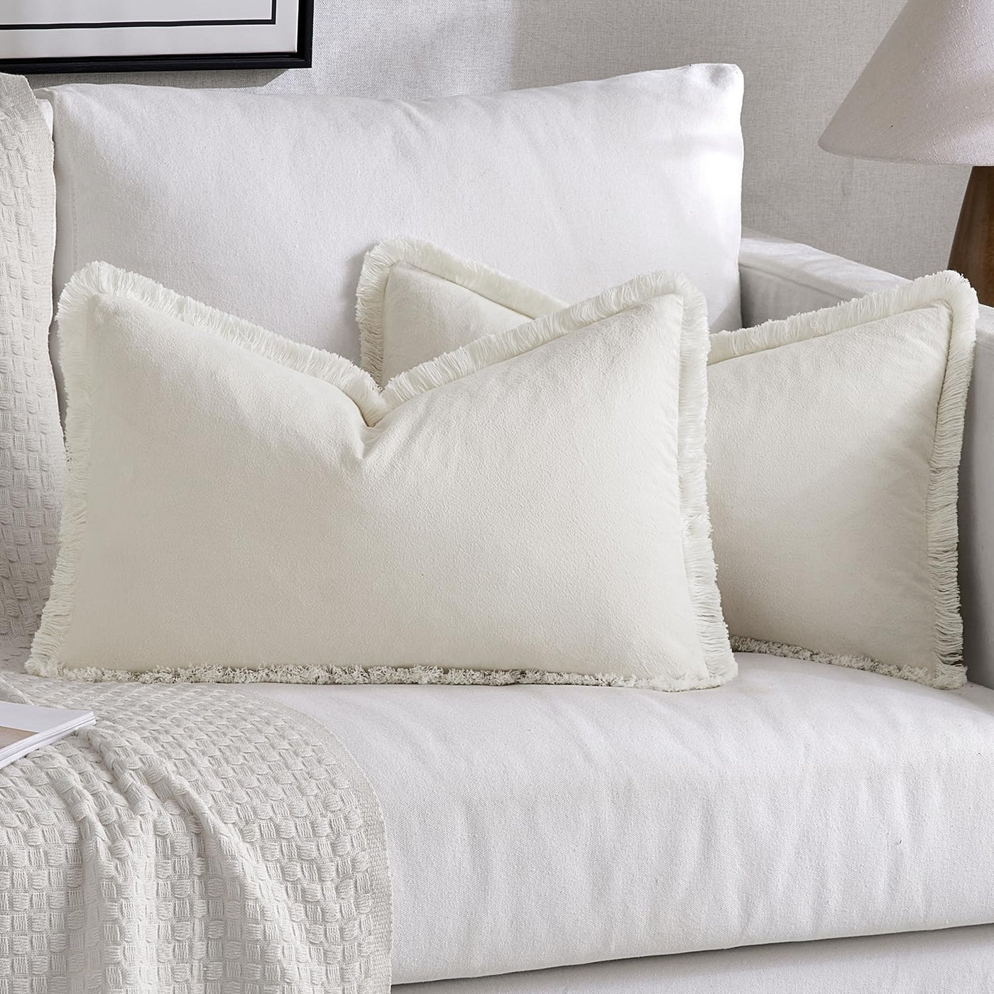 Miulee Pillow Covers Boho Farmhouse 12X20 Set Of 2 Decorative Cream White Couch Pillow Covers With Fringe Chic Cotton Throw Pillows Home Decor Accents For Spring Cushion Sof Bed Living Room