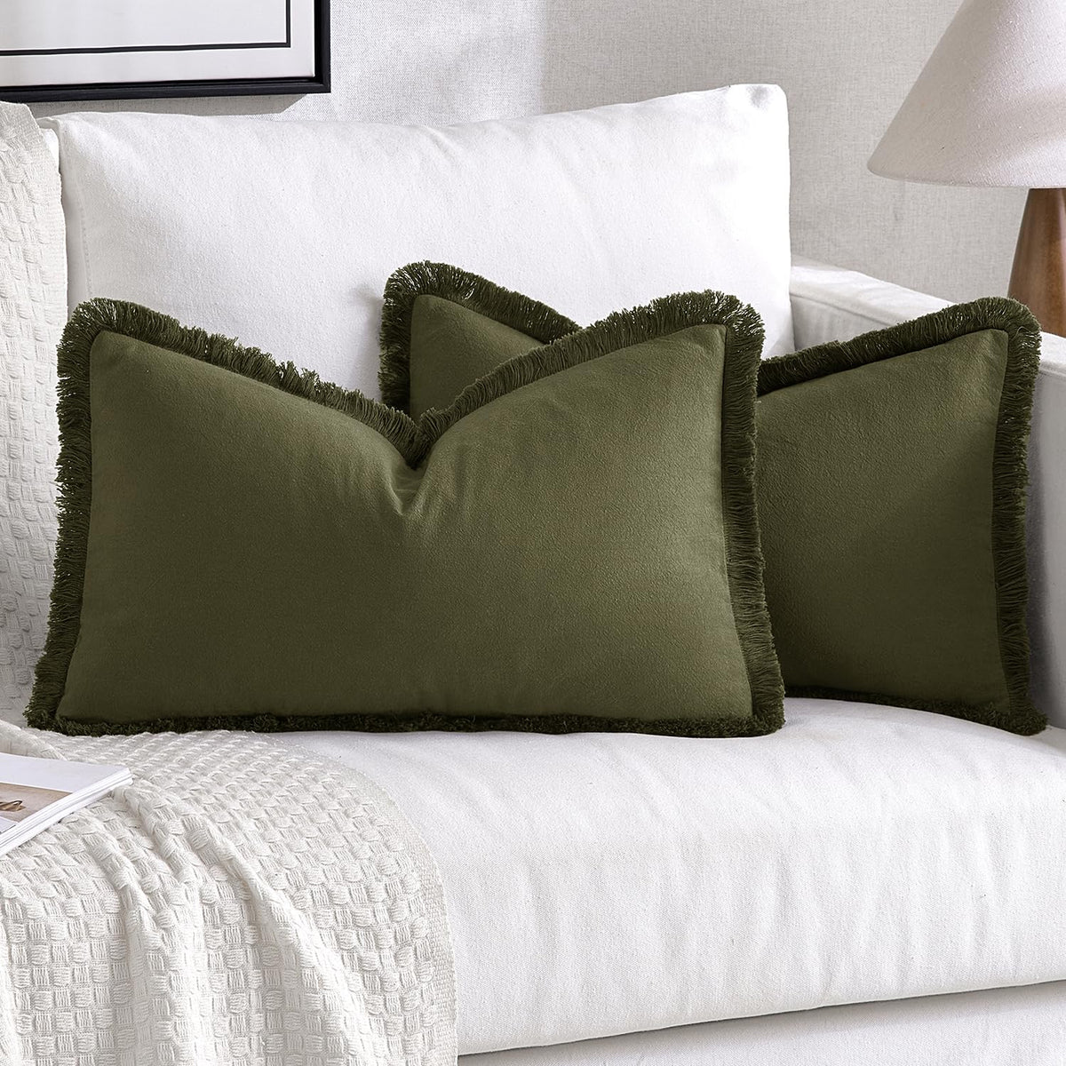 Miulee Pillow Covers Boho Farmhouse 12X20 Set Of 2 Decorative Olive Green Couch Pillow Covers With Fringe Chic Cotton Throw Pillows Home Decor Accents For Spring Cushion Sof Bed Living Room