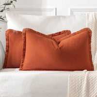 Miulee Pillow Covers Boho Farmhouse 12X20 Set Of 2 Decorative Rust Couch Pillow Covers With Fringe Chic Cotton Throw Pillows Home Decor Accents For Cushion Sof Bed Living Room