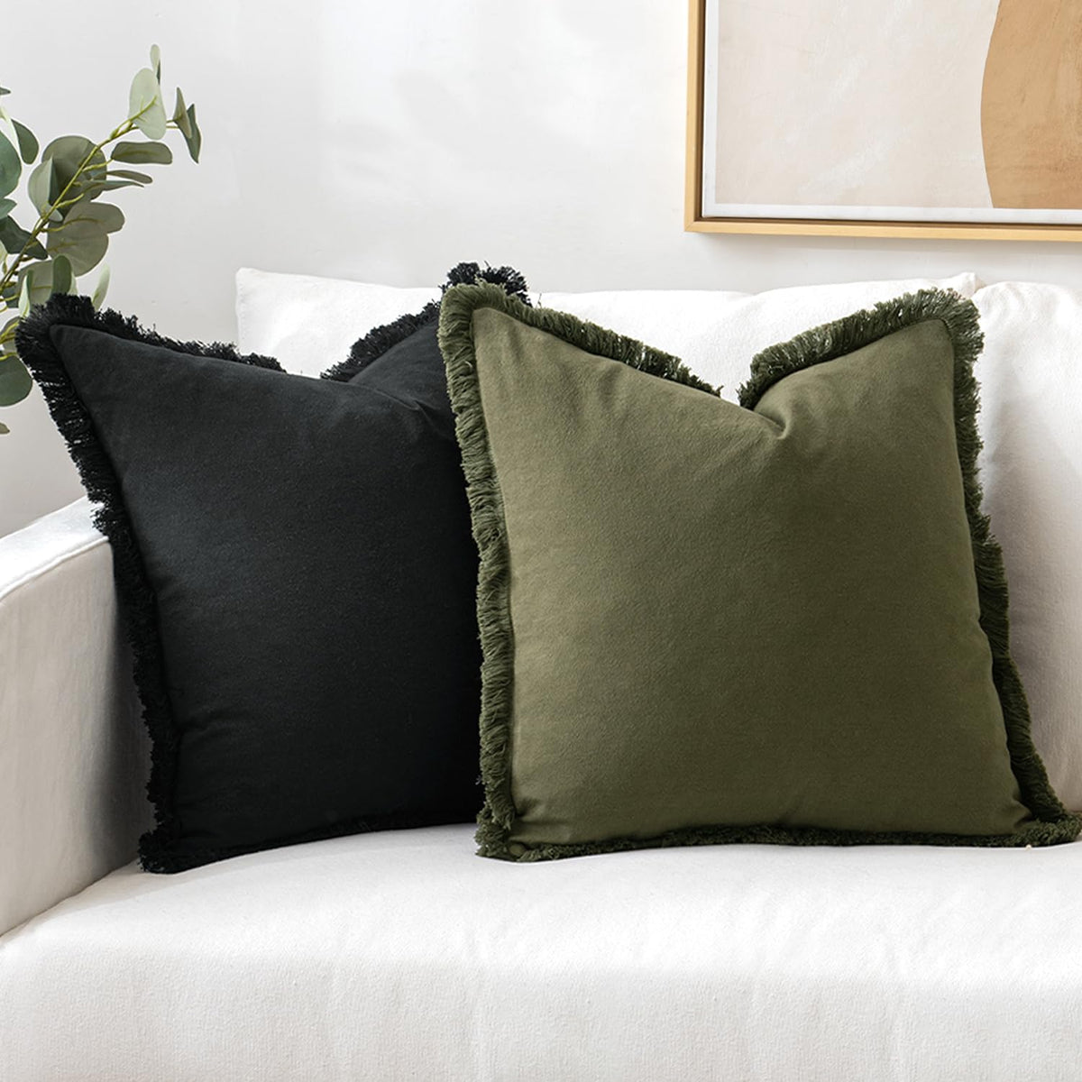 Miulee Pillow Covers Boho Farmhouse 18X18 Set Of 2 Decorative Olive Green Couch Pillow Covers With Fringe Chic Cotton Throw Pillows Home Decor Accents For Spring Cushion Sof Bed Living Room