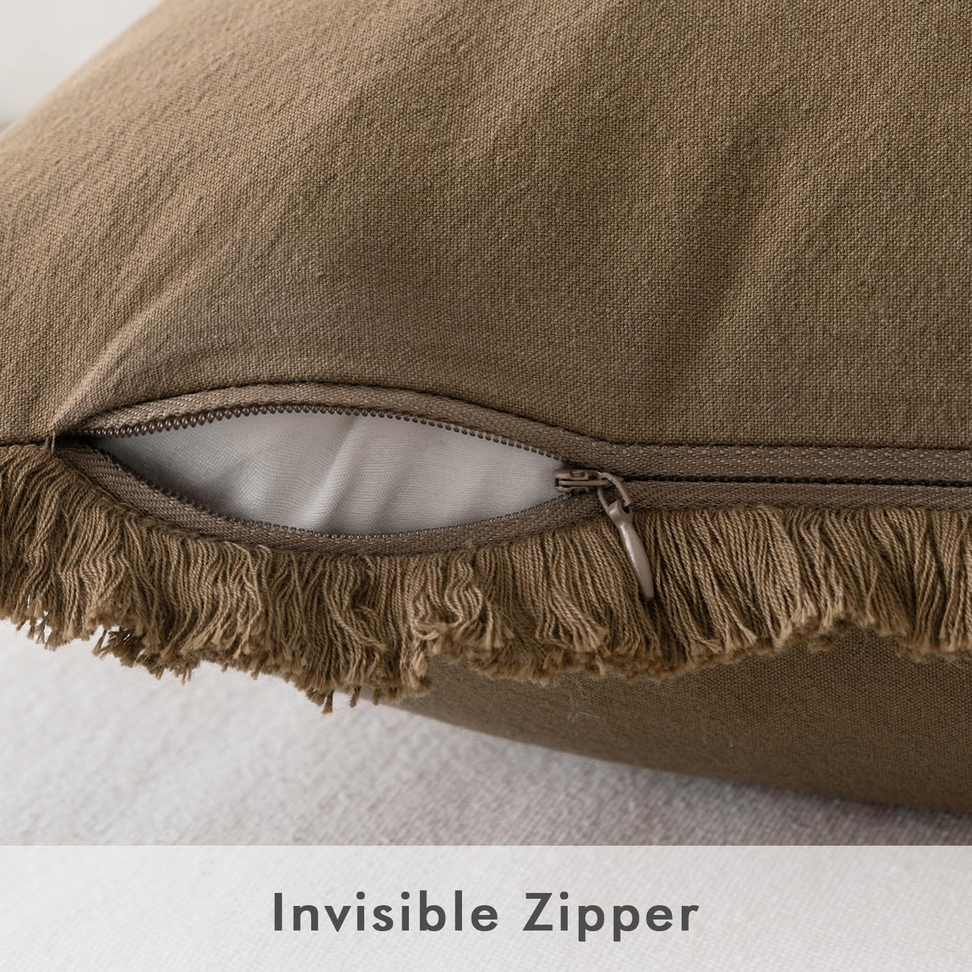 Miulee Pillow Covers Boho Farmhouse 20X20 Set Of 2 Decorative Brown Couch Pillow Covers With Fringe Chic Cotton Throw Pillows Home Decor Accents For Cushion Sof Bed Living Room