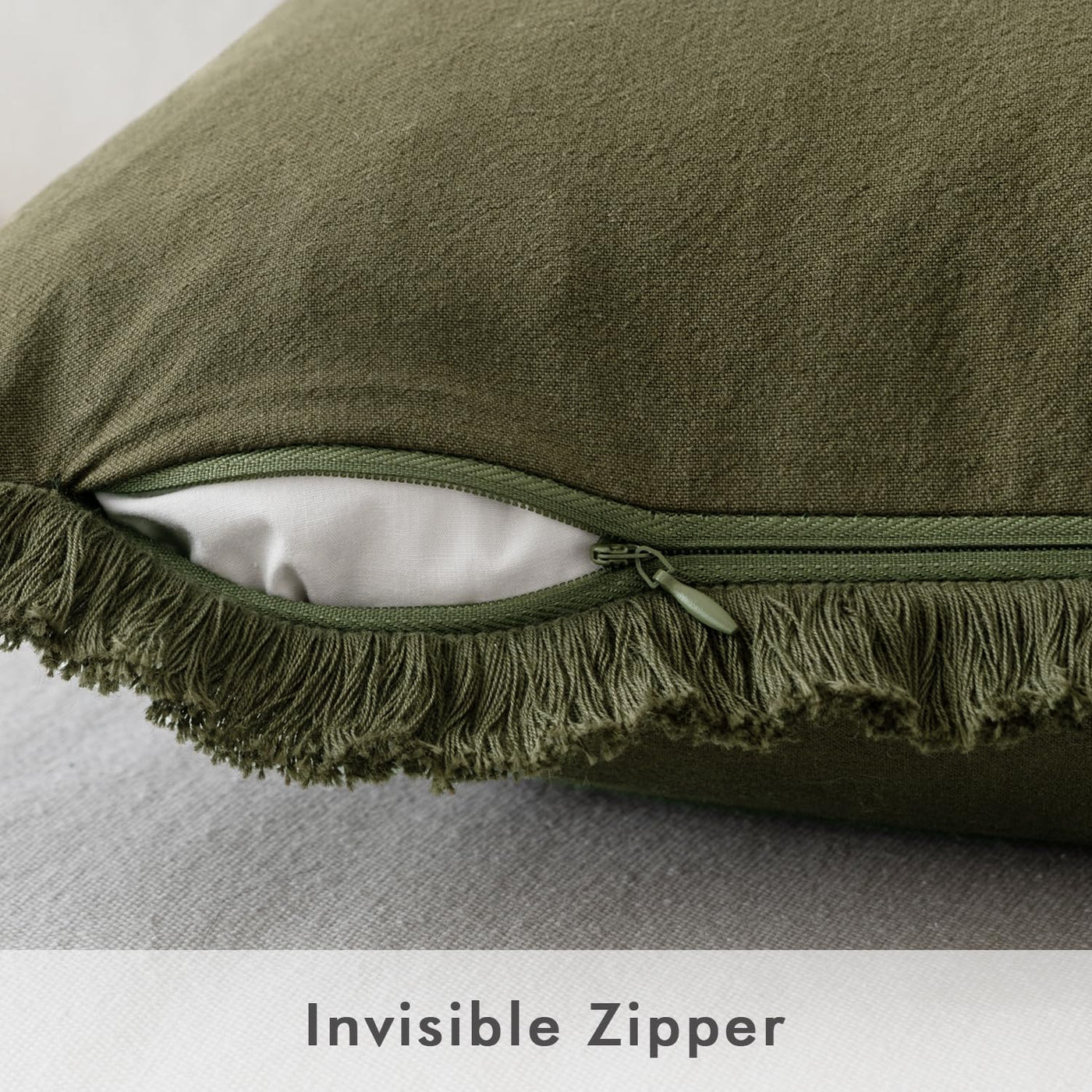 Miulee Pillow Covers Boho Farmhouse 20X20 Set Of 2 Decorative Olive Green Couch Pillow Covers With Fringe Chic Cotton Throw Pillows Home Decor Accents For Spring Cushion Sof Bed Living Room