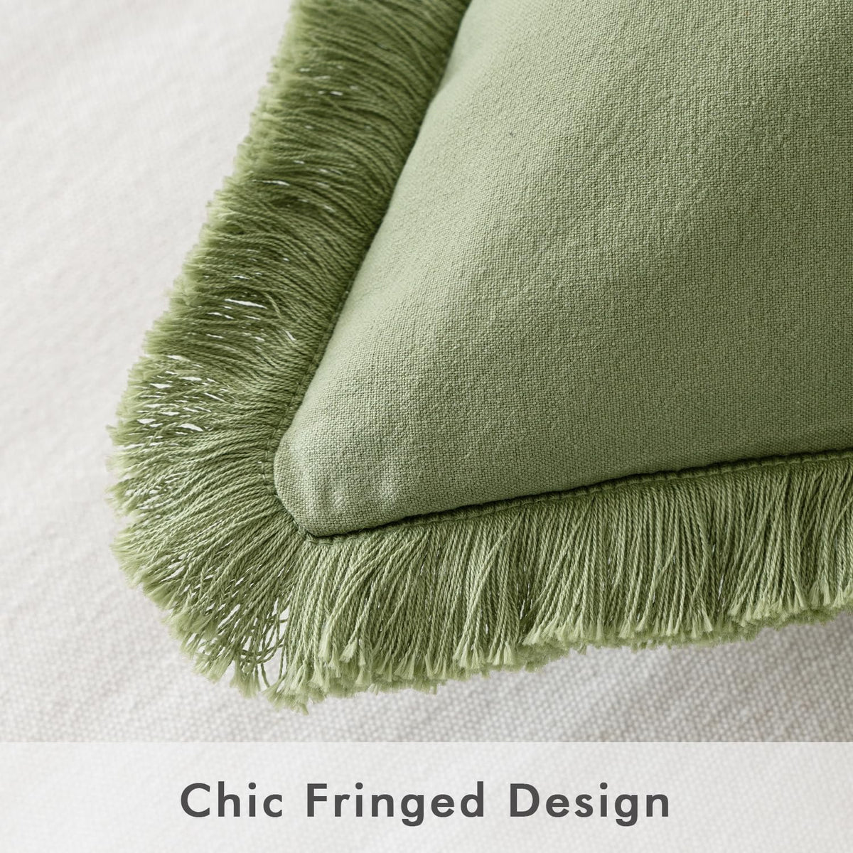 Miulee Pillow Covers Boho Farmhouse 20X20 Set Of 2 Decorative Sage Green Couch Pillow Covers With Fringe Chic Cotton Throw Pillows Home Decor Accents For Spring Cushion Sof Bed Living Room