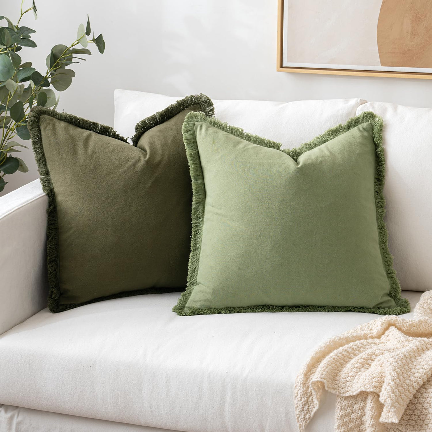 Miulee Pillow Covers Boho Farmhouse 22X22 Set Of 2 Decorative Olive Green Couch Pillow Covers With Fringe Chic Cotton Throw Pillows Home Decor Accents For Spring Cushion Sof Bed Living Room