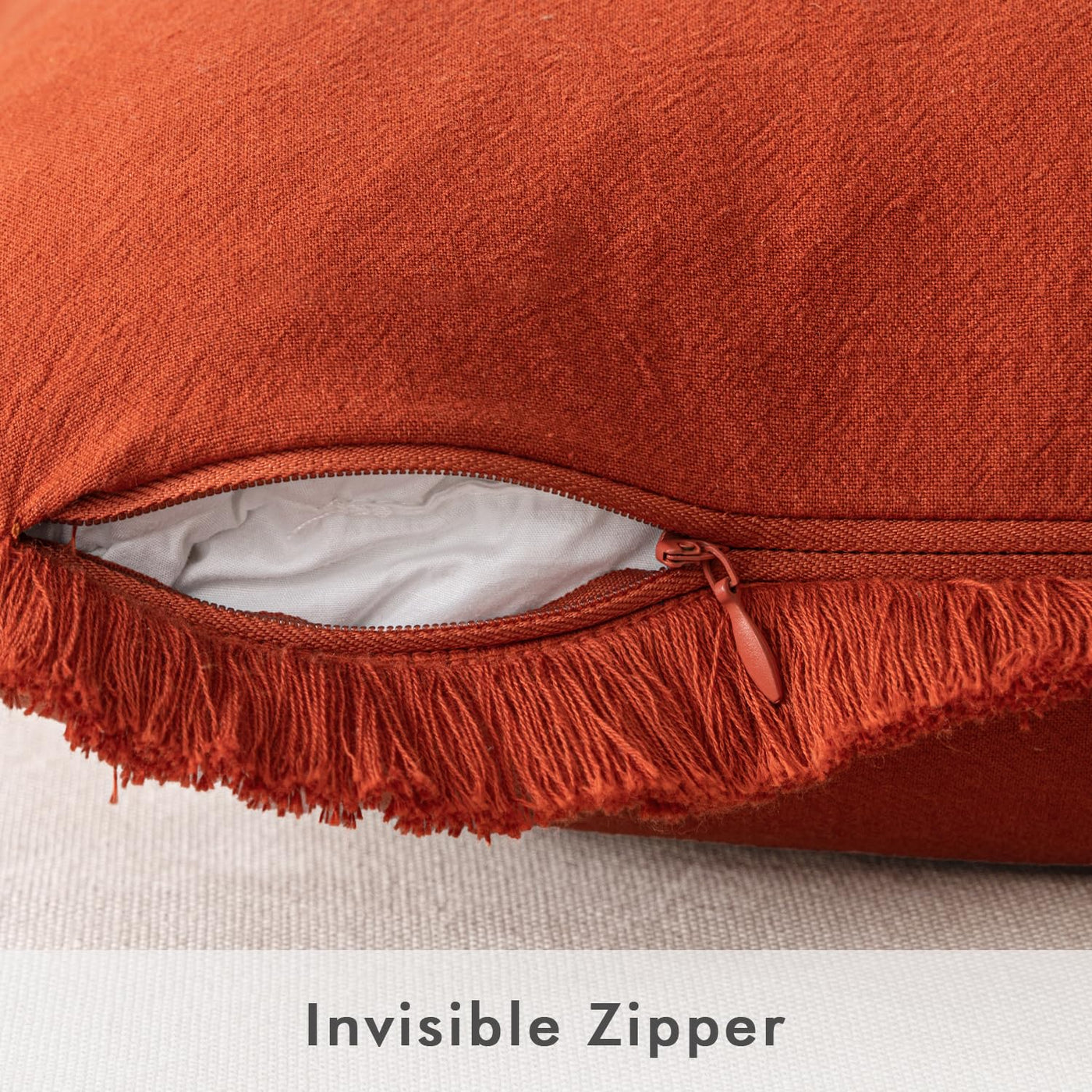 Miulee Pillow Covers Boho Farmhouse 24X24 Set Of 2 Decorative Burnt Orange Couch Pillow Covers With Fringe Chic Cotton Throw Pillows Home Decor Accents For Cushion Sof Bed Living Room
