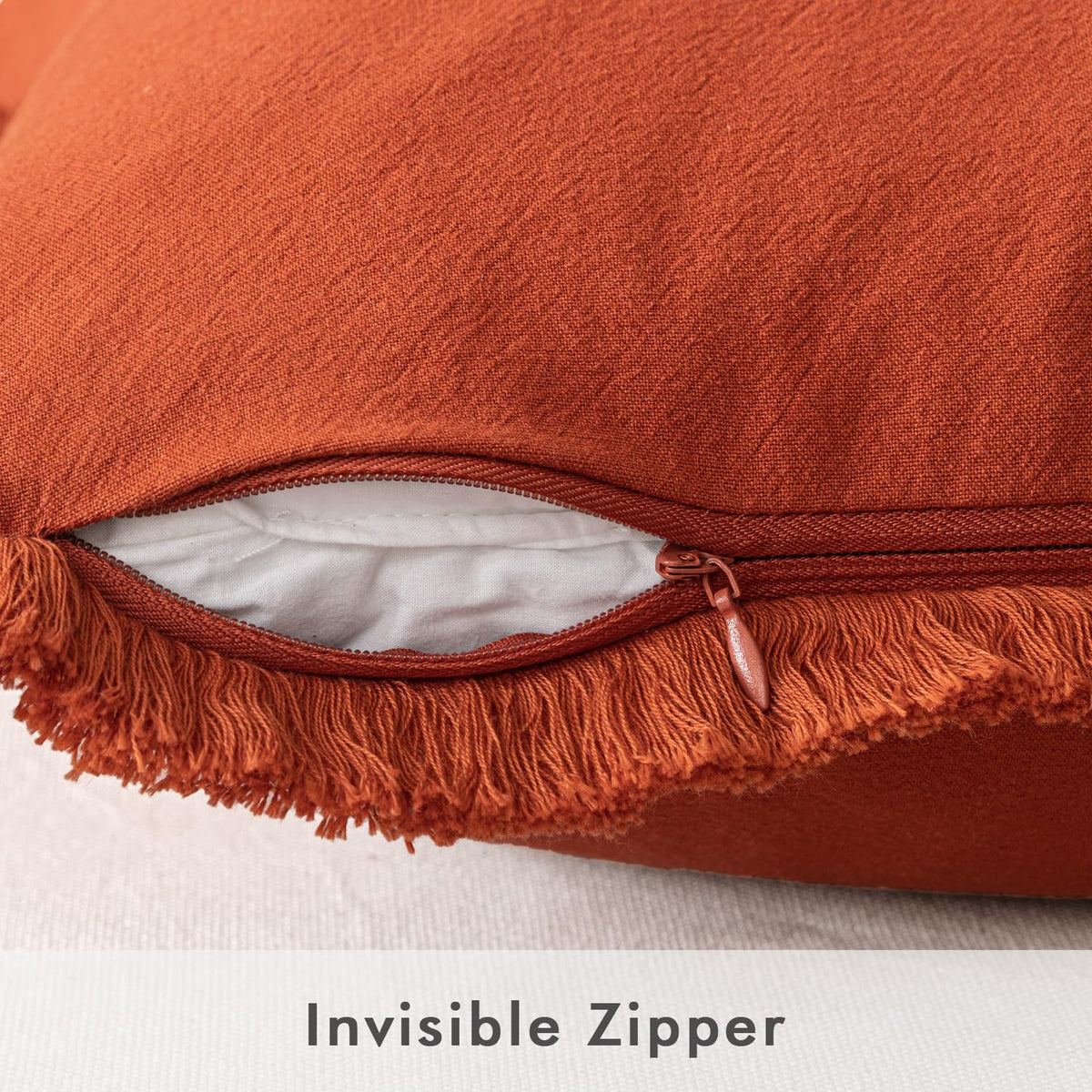 Miulee Pillow Covers Boho Farmhouse 24X24 Set Of 2 Decorative Rust Couch Pillow Covers With Fringe Chic Cotton Throw Pillows Home Decor Accents For Cushion Sof Bed Living Room
