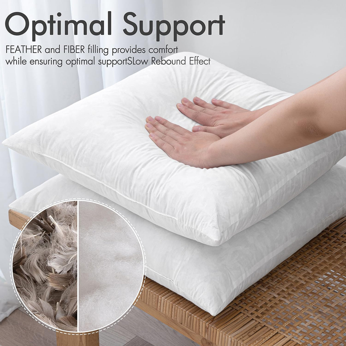 Premium Material: The Cover Of Pillow Inserts Is Made Of 100% Cotton In Order To Prevent Down Overflowing. The Filling Material Is A Mixture Of 50% 7D Cotton And 50% Grey Feather To Ensure Comfort And Support.