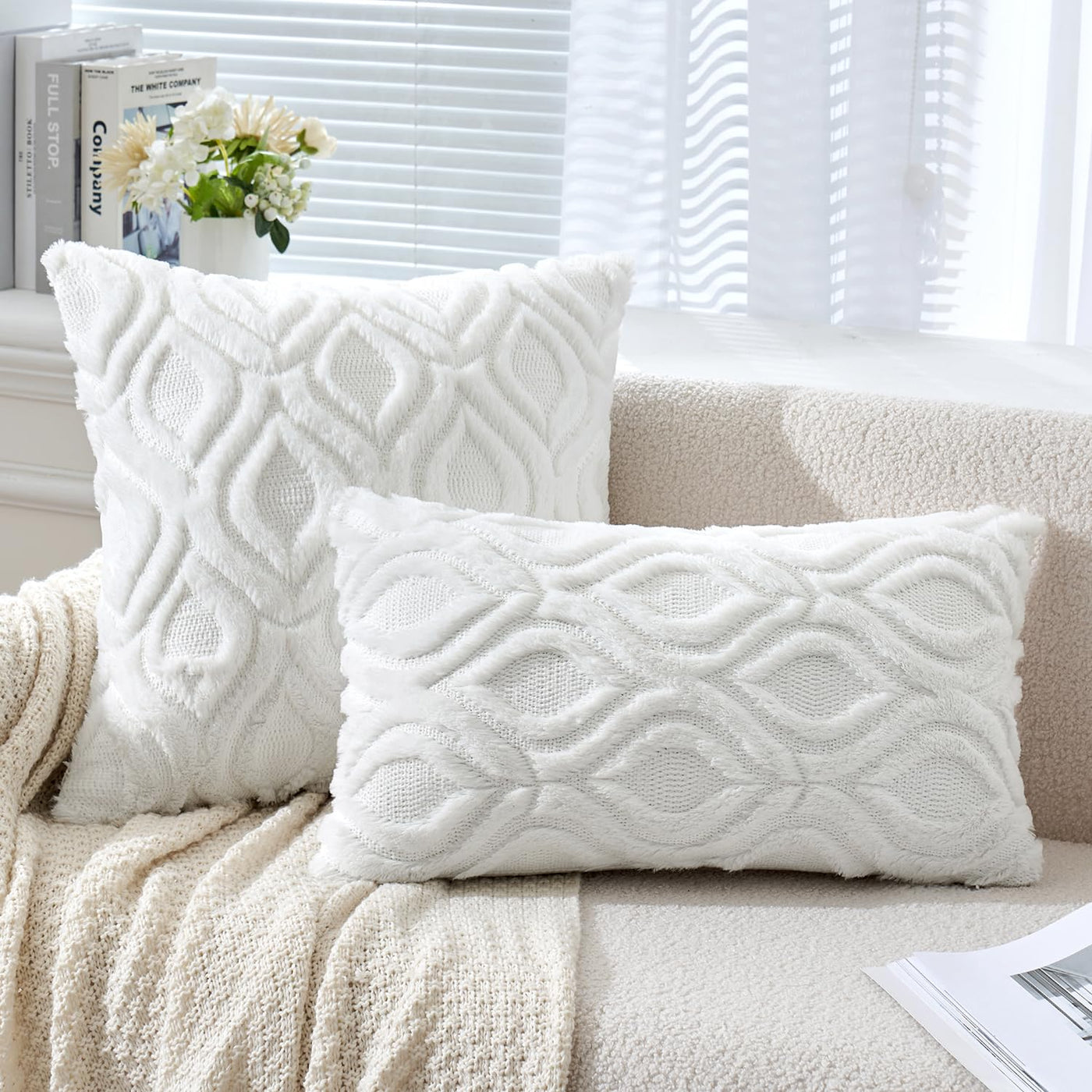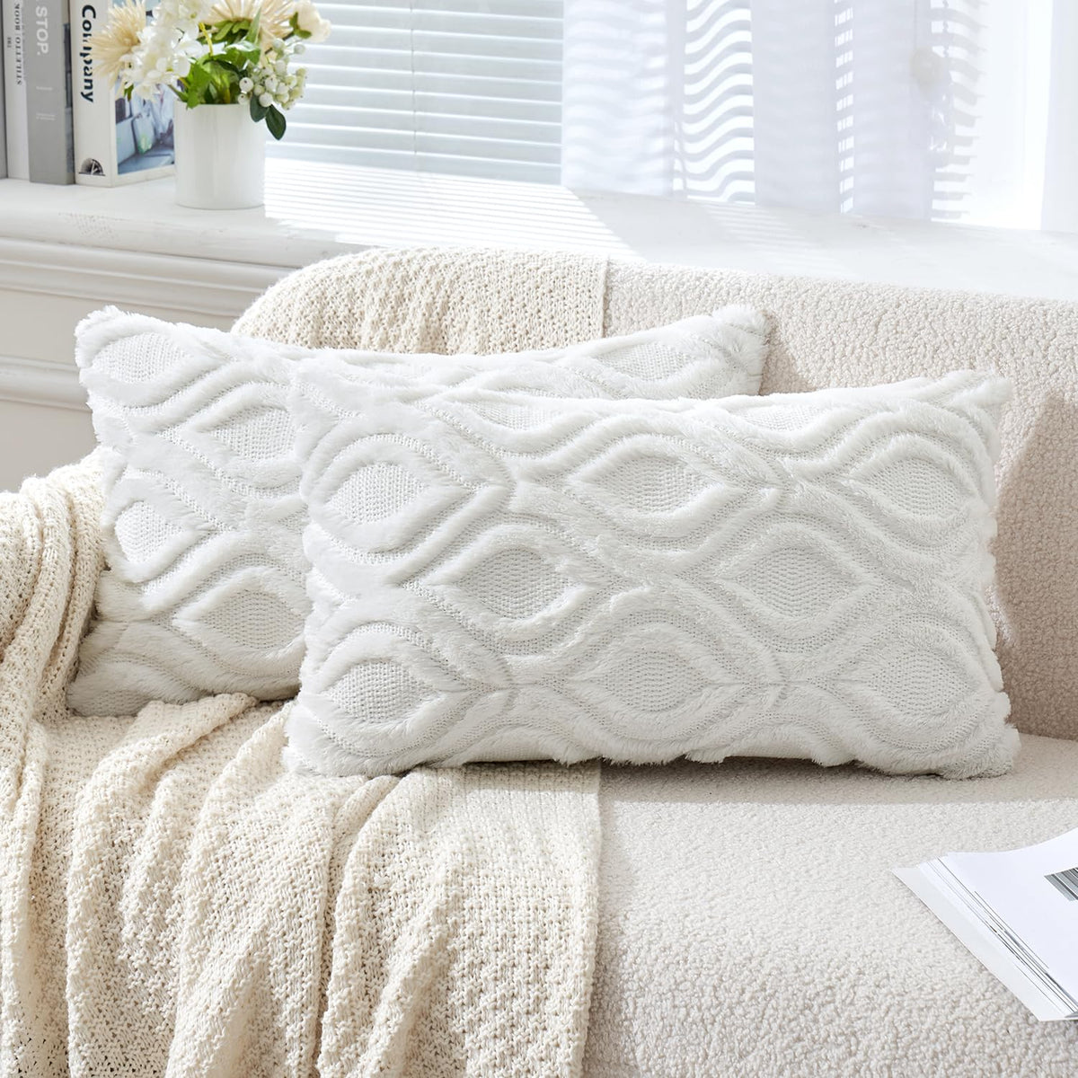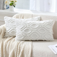 Miulee Pure White Throw Pillow Covers 12X20 Inch, Soft Winter Plush Faux Wool Couch Pillow Covers Set Of 2 Decorative Farmhouse Boho Throw Pillows For Sofa Living Room Bed