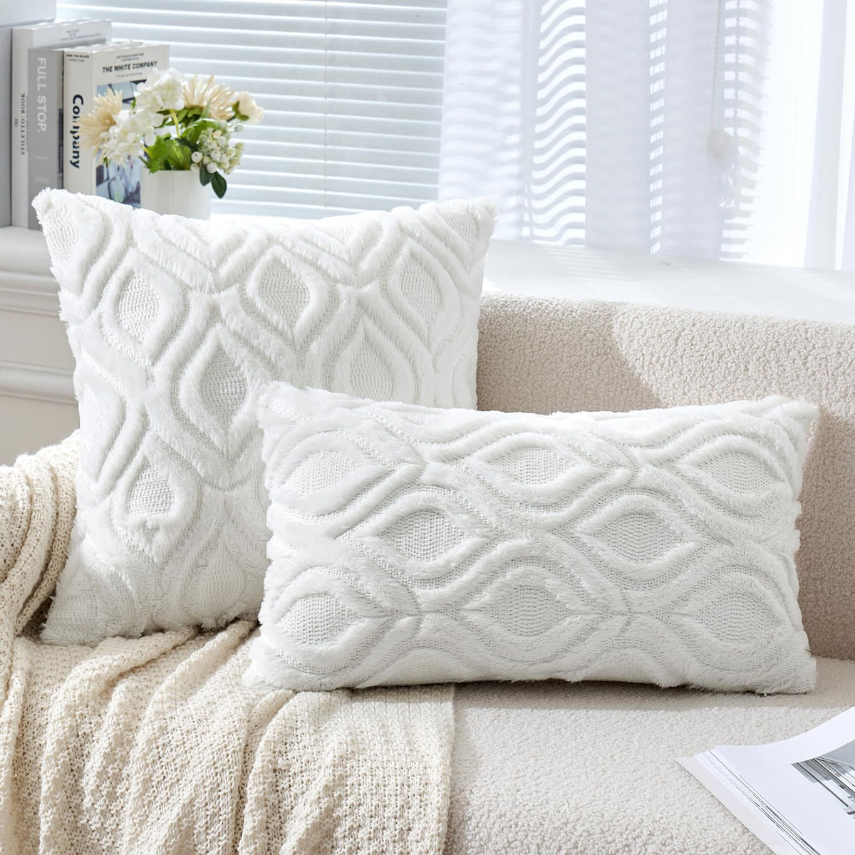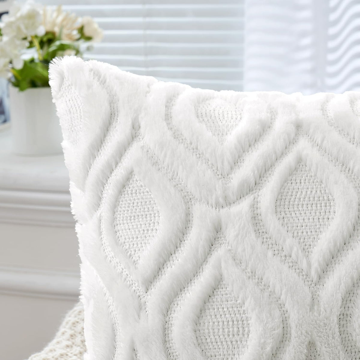 Miulee Pure White Throw Pillow Covers 18X18 Inch, Soft Winter Plush Faux Wool Couch Pillow Covers Set Of 2 Decorative Farmhouse Boho Throw Pillows For Sofa Living Room Bed