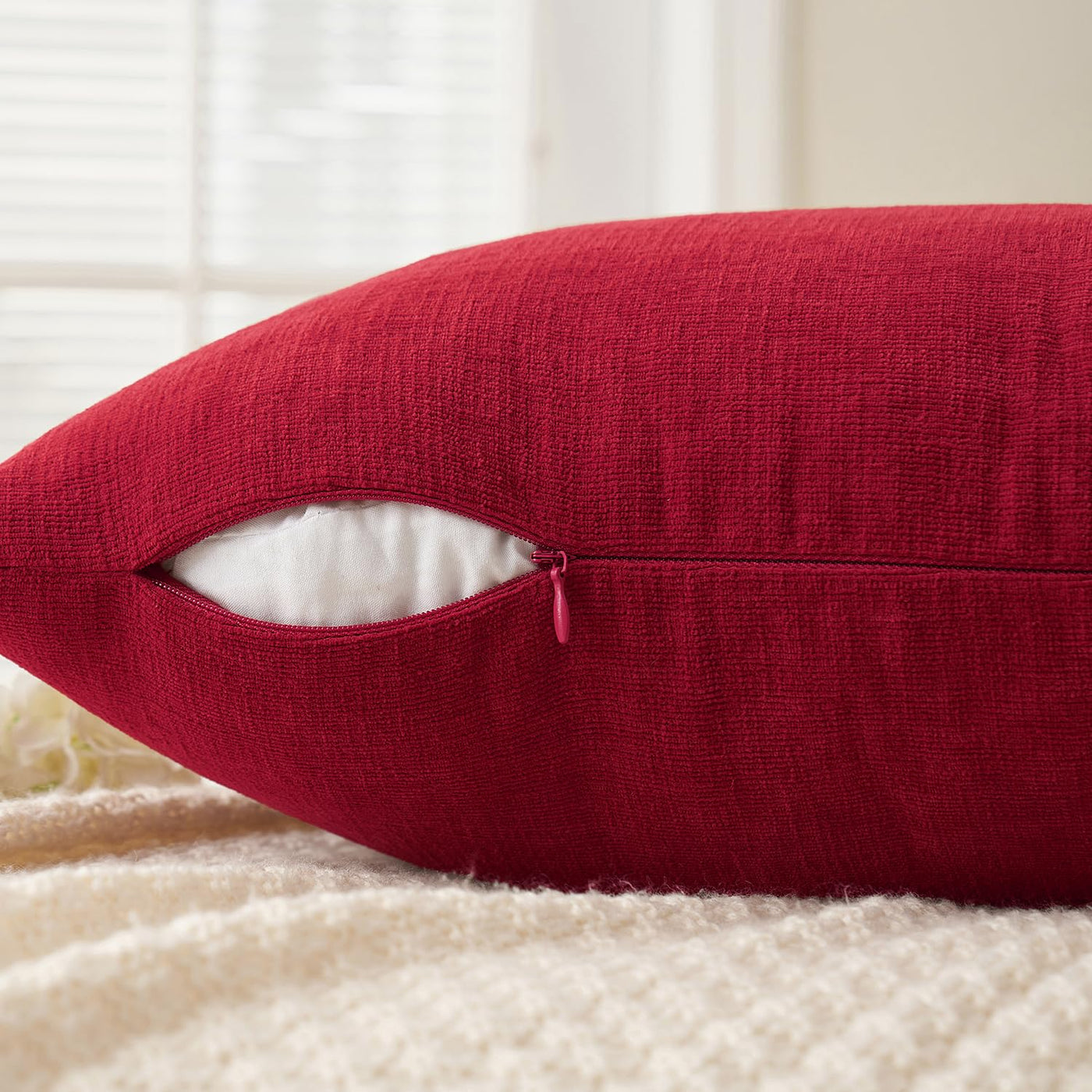 Miulee Red Couch Pillow Covers 12X20 Inch, Set Of 2 Soft Chenille Decorative Lumbar Throw Pillow Covers Farmhouse For Sofa Living Room Bed