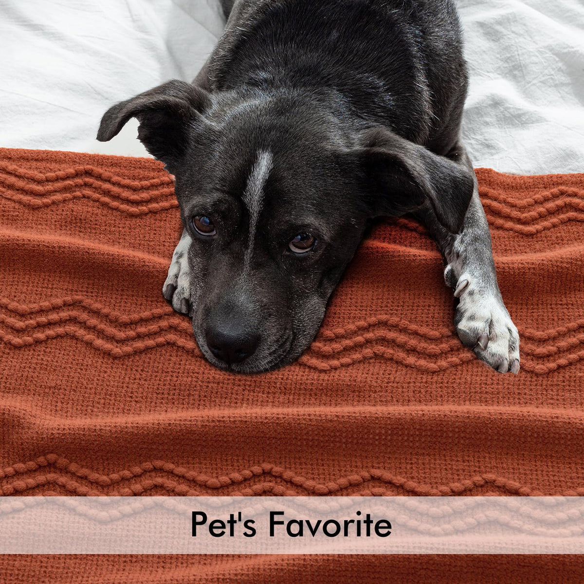 Miulee Rust Knitted Throw Blanket For Couch Terracotta Boho Textured Cozy Woven Rustic Blanket With Tassels For Sofa Chair Bed Living Room Farmhouse Decor Acrylic Wave Pattern 50'X60'