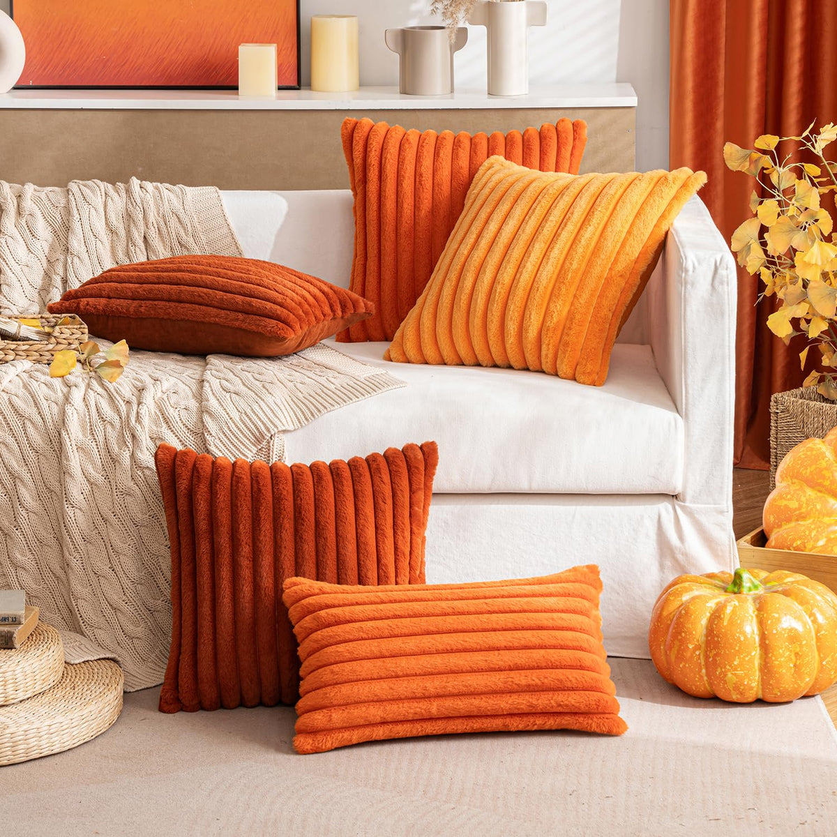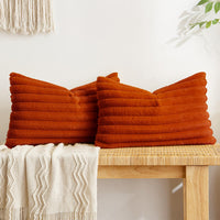 Miulee Rust Throw Pillow Covers 12X20 Inch Set Of 2 Soft Pillowcases With Velvet Back Faux Rabbit Fur Cushion Covers Decorative Home Decor For Winter Couch Sofa Bedroom Livingroom