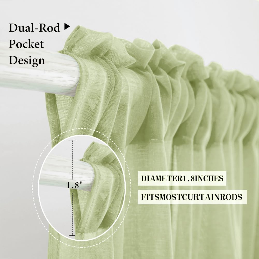 Miulee Sage Green Linen Textured Sheer Curtains 84 Inches Long 2 Panels For Bedroom Living Room, Semi Transparent Farmhouse Window Treatment Drapes Rod Pocket Spring Boho Decor W54 X L84 Inch Length