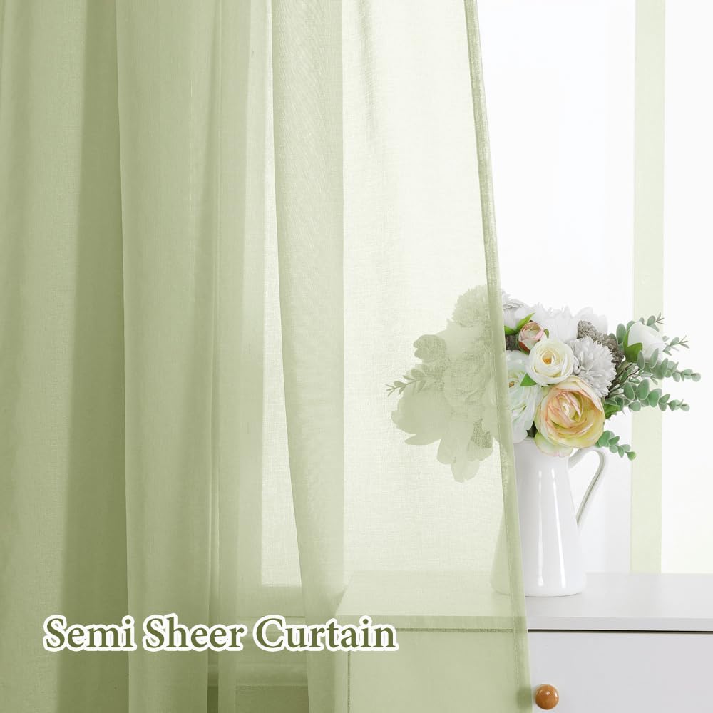 Miulee Sage Green Linen Textured Sheer Curtains For Bedroom Living Room, Semi Transparent Farmhouse Window Treatment Drapes With Rod Pocket 2 Panels W 54 X L 108 Inches Long Spring Decor