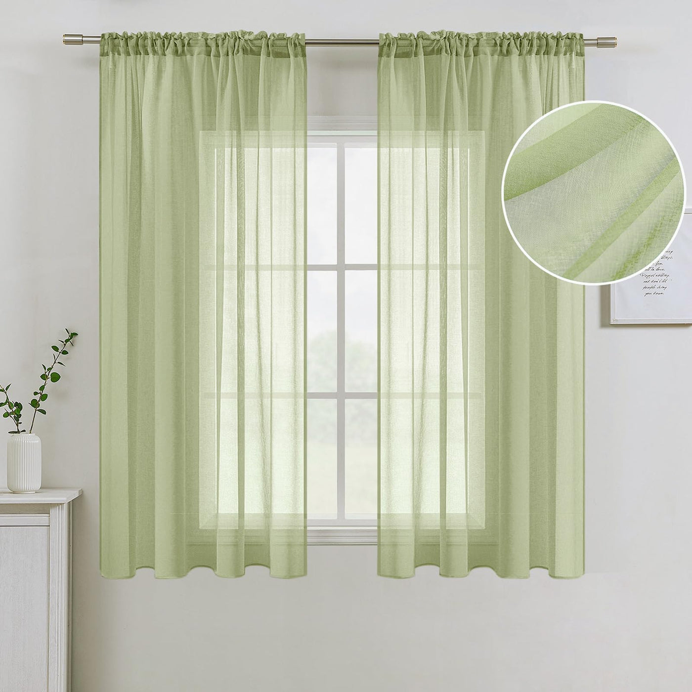 Miulee Sage Green Linen Textured Sheer Curtains For Bedroom Living Room, Semi Transparent Farmhouse Window Treatment Drapes With Rod Pocket 2 Panels W 54 X L 54 Inches Long Spring Decor