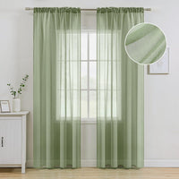 Miulee Sage Green Linen Textured Sheer Curtains For Bedroom Living Room, Semi Transparent Farmhouse Window Treatment Light Green Drapes With Rod Pocket 2 Panels W 54 X L 90 Inches Long