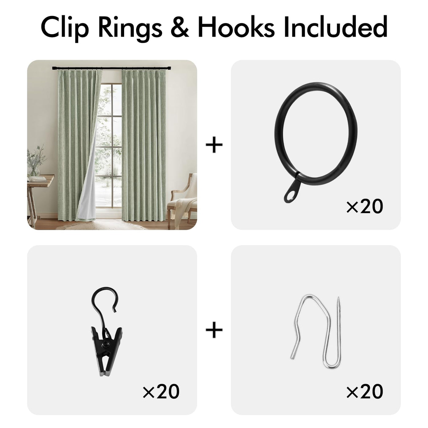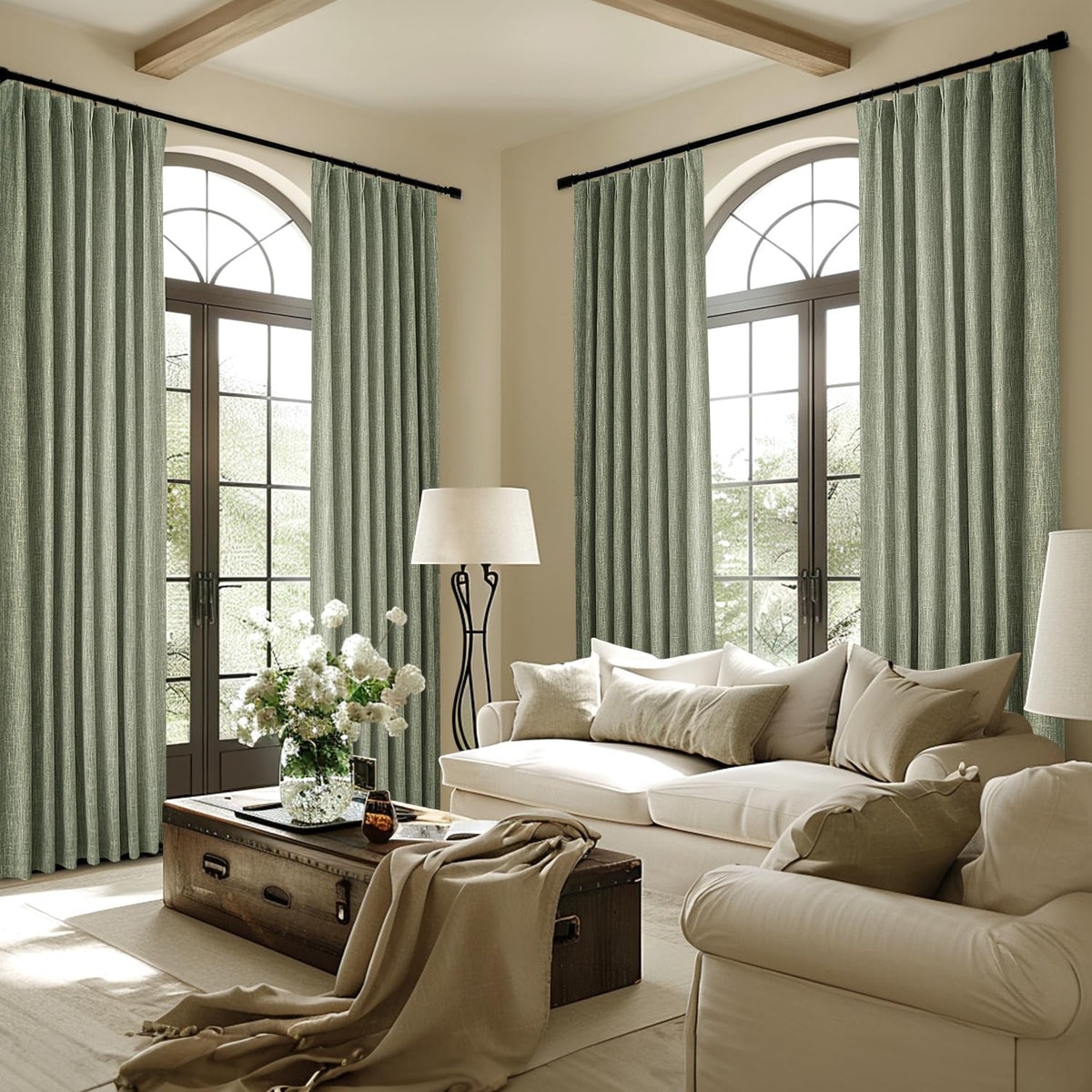 Miulee Sage Green Pinch Pleated 100% Blackout Linen Curtains 108 Inch Long 2 Panels Set, Pleat Curtains With Pin Hooks, Black Ou