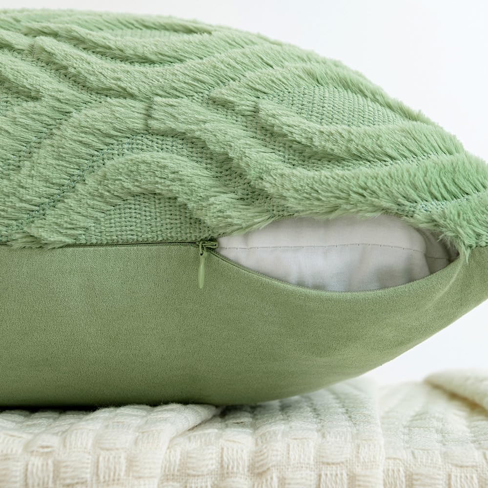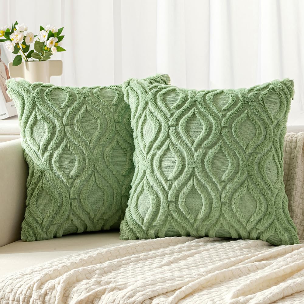 Miulee Sage Green Throw Pillow Covers 22X22 Inch, Soft Spring Plush Faux Wool Couch Pillow Covers Set Of 2 Decorative Farmhouse Boho Throw Pillows For Sofa Living Room Bed