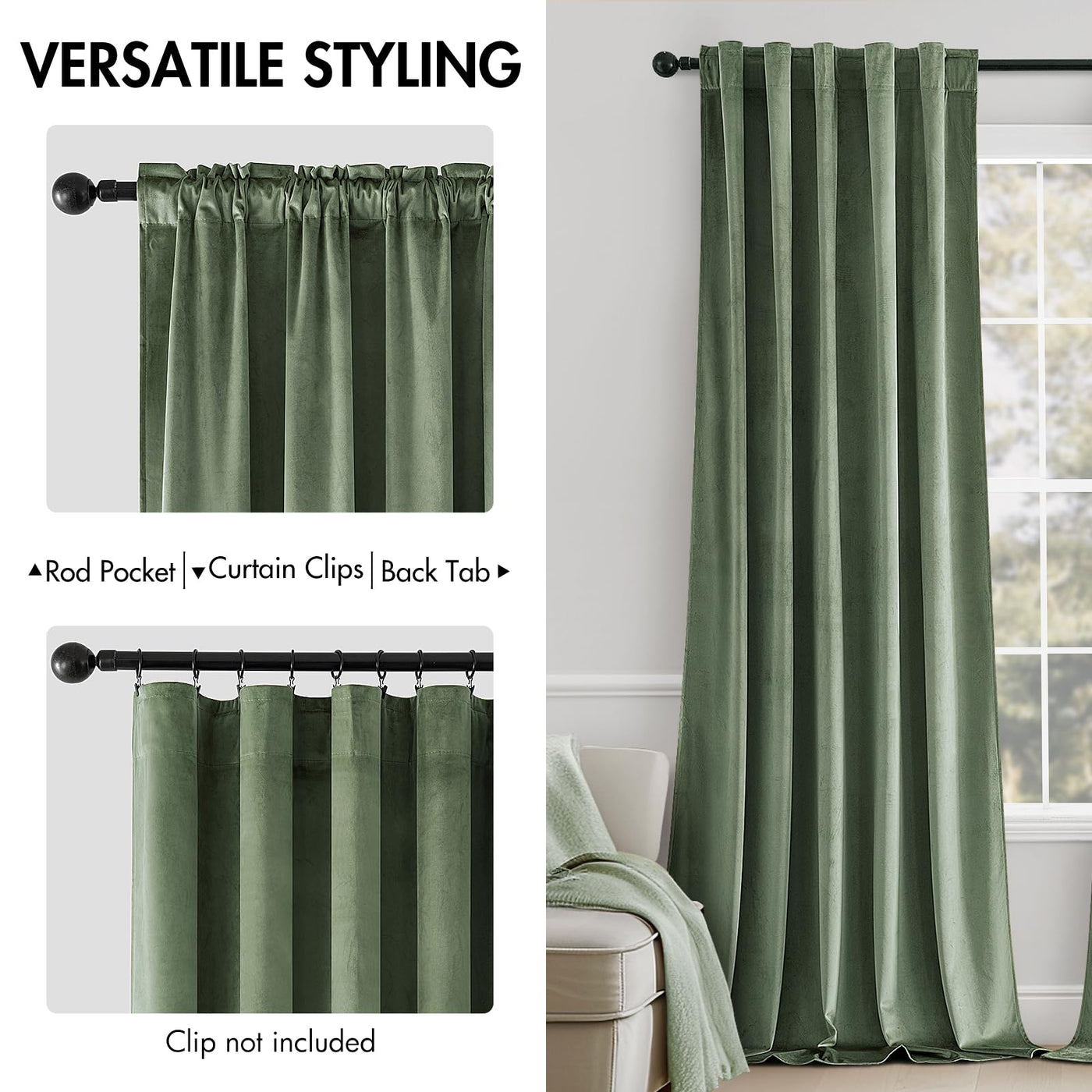 Miulee Sage Green Velvet Curtains 84 Inches - Luxury Blackout Curtains For Bedroom Living Room Thermal Insulated Super Soft Window Drapes Back Tab Rod Pocket, W52 X L84 Inches, 2 Panels
