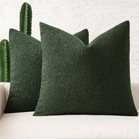 Miulee Set Of 2 Christmas Dark Green Throw Pillow Covers 24X24 Inch Decorative Couch Pillow Covers Textured Boucle Accent Solid