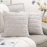 Miulee Set Of 2 Decorative Boho Throw Pillow Covers Linen Striped Jacquard Pattern Cushion Covers For Sofa Couch Living Room Bedroom 18X18 Inch Greyish White