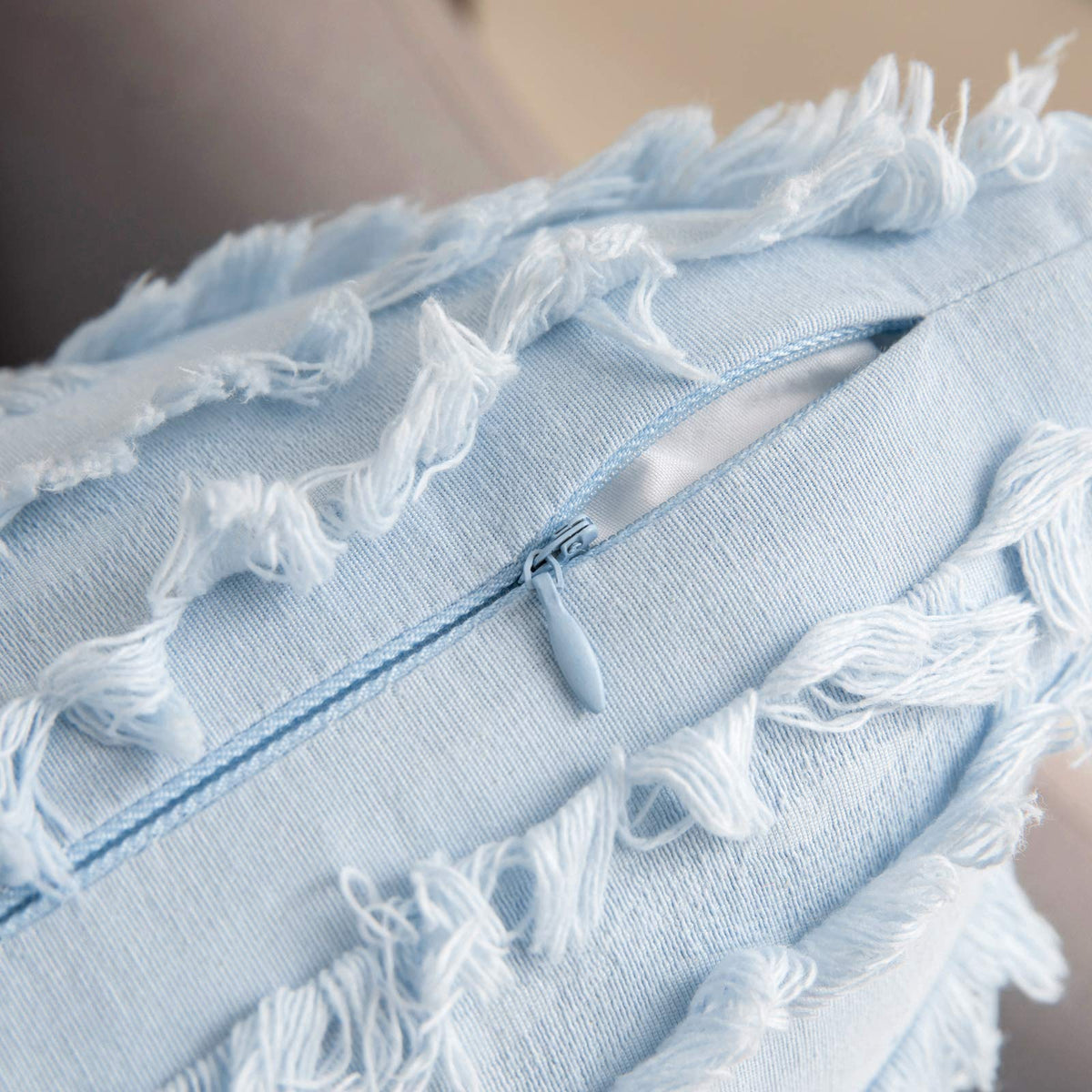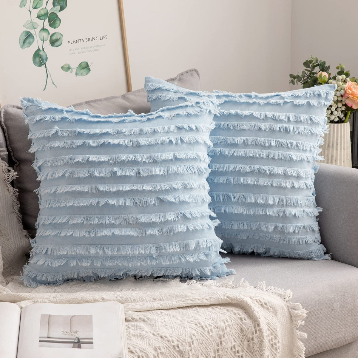 Miulee Set Of 2 Decorative Boho Throw Pillow Covers Linen Striped Jacquard Pattern Cushion Covers For Sofa Couch Living Room Bedroom 18X18 Inch Light Blue