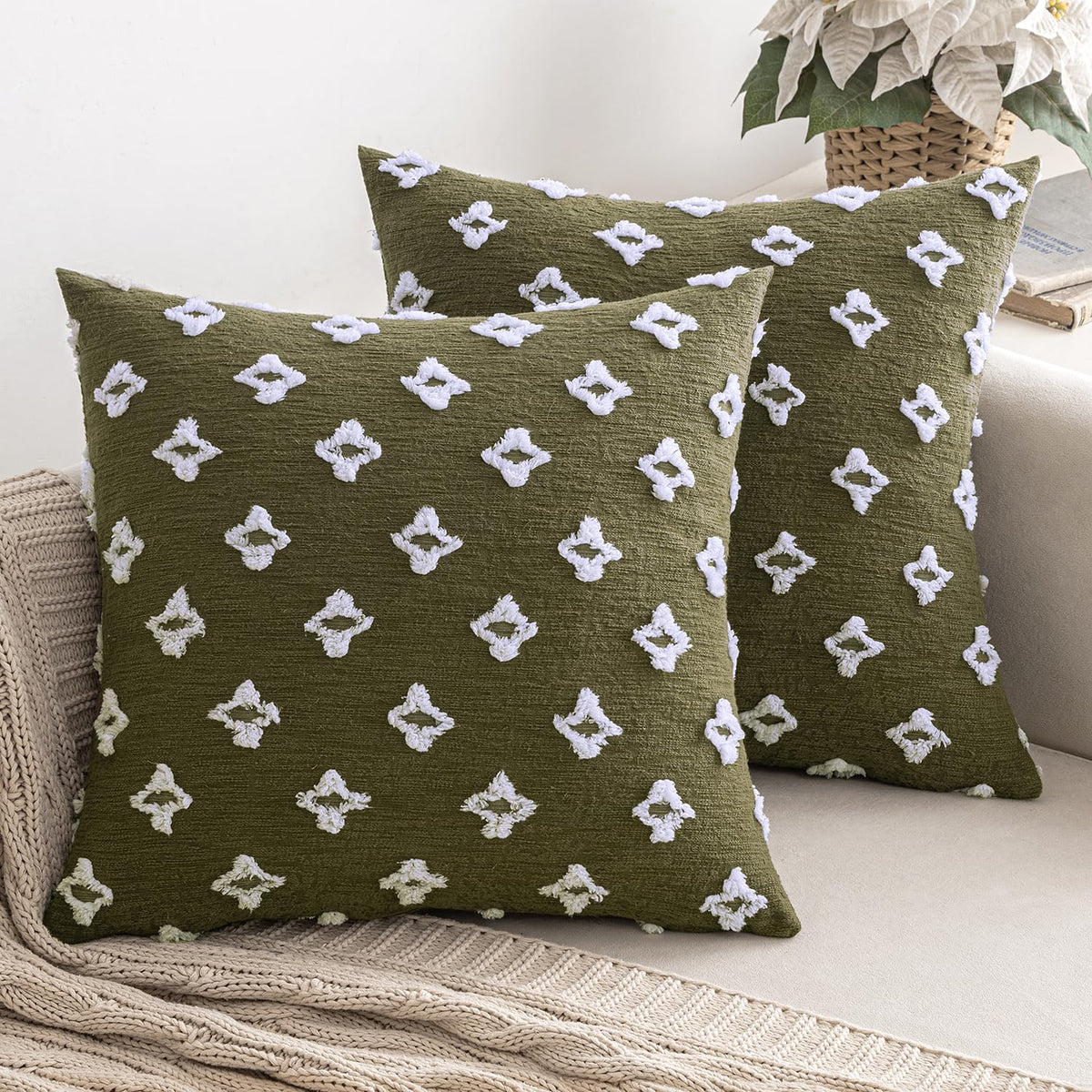 Miulee Set Of 2 Decorative Throw Pillow Covers Rhombic Jacquard Pillowcase Soft Square Cushion Case For Couch Sofa Bed Bedroom Living Room, 18X18 Inch, Olive Green