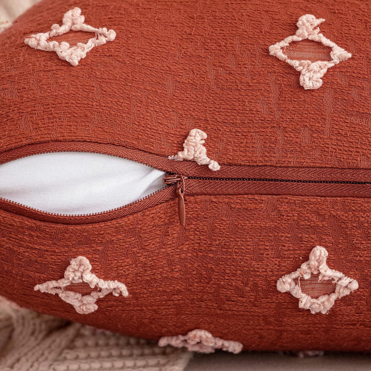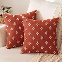 Miulee Set Of 2 Decorative Throw Pillow Covers Rhombic Jacquard Pillowcase Soft Square Cushion Case For Couch Sofa Bed Bedroom Living Room, 18X18 Inch, Rust