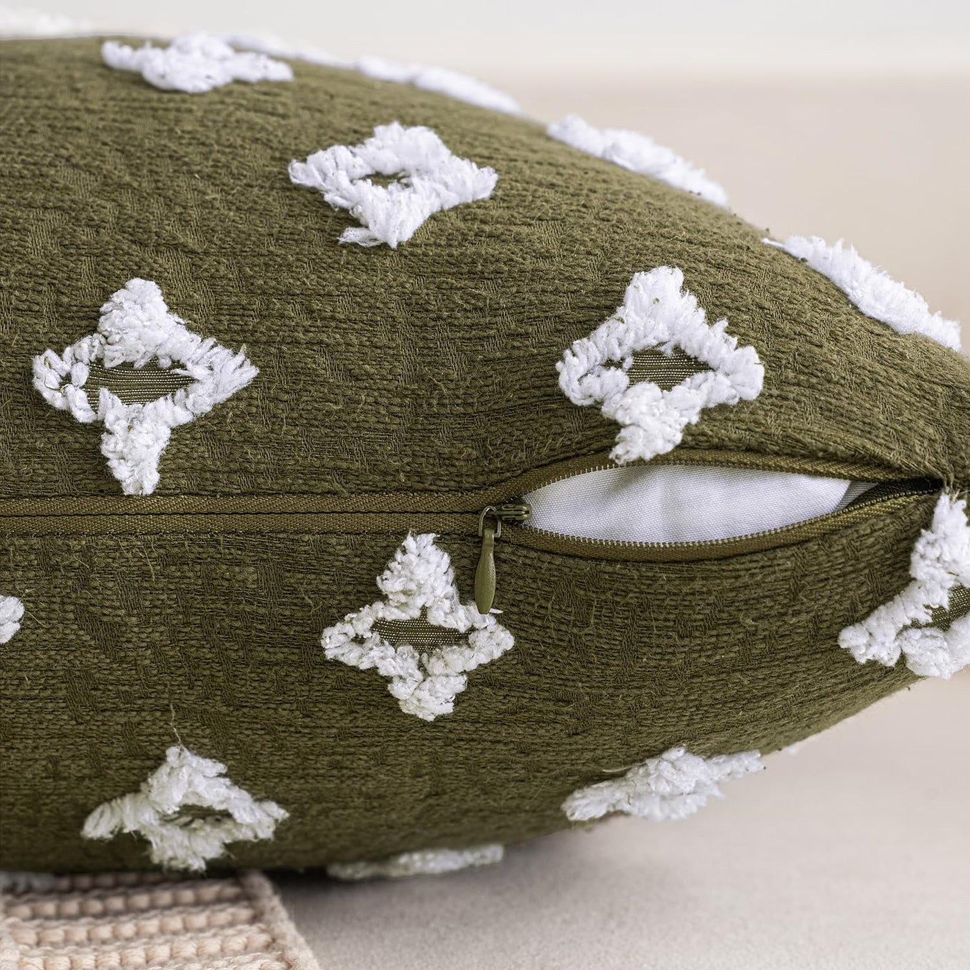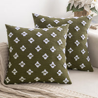 Miulee Set Of 2 Decorative Throw Pillow Covers Rhombic Jacquard Pillowcase Soft Square Cushion Case For Couch Sofa Bed Bedroom Living Room, 20X20 Inch, Olive Green