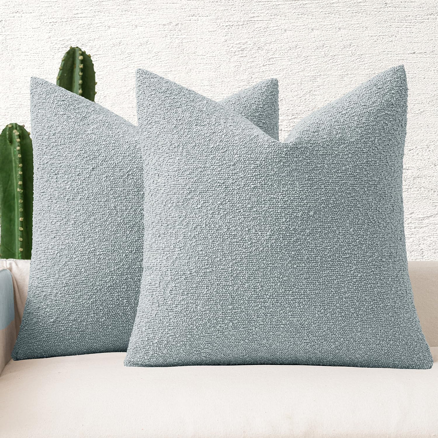 Miulee Set Of 2 Light Blue Throw Pillow Covers 18X18 Inch Decorative Couch Pillow Covers Textured Boucle Accent Solid Spring Pillow Cases Soft For Cushion Chair Sofa Bedroom Livingroom Home Decor