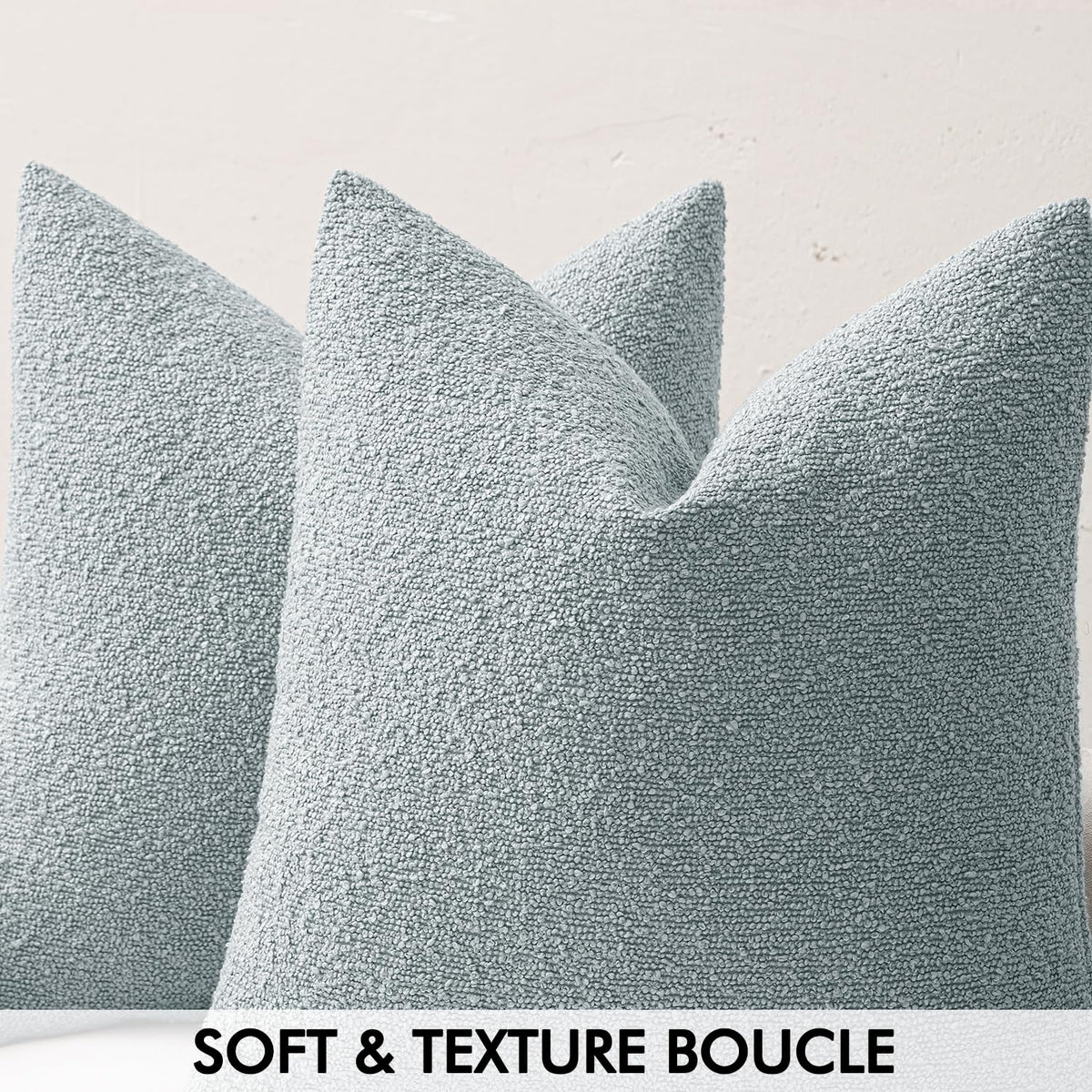 Miulee Set Of 2 Light Blue Throw Pillow Covers 20X20 Inch Decorative Couch Pillow Covers Textured Boucle Accent Solid Spring Pillow Cases Soft For Cushion Chair Sofa Bedroom Livingroom Home Decor