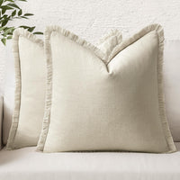 Miulee Set Of 2 Linen Throw Pillow Covers Decorative Square Pillow Covers Farmhouse Style Boho Cushion Covers Natural Beige Pill