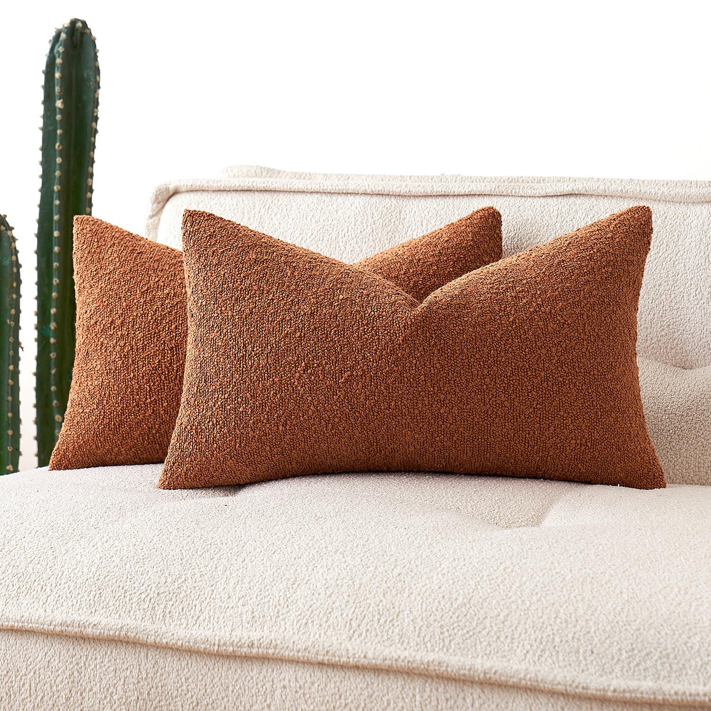 Miulee Set Of 2 Rust Fall Throw Pillow Covers 12X20 Inch Decorative Couch Pillow Covers Textured Boucle Accent Solid Pillow Case