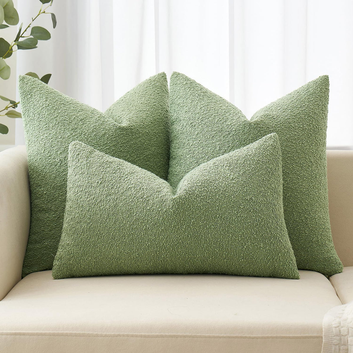 Miulee Set Of 2 Sage Green Throw Pillow Covers 20X20 Inch Decorative Couch Pillow Covers Textured Boucle Accent Solid Spring Pillow Cases Soft For Cushion Chair Sofa Bedroom Livingroom Home Decor