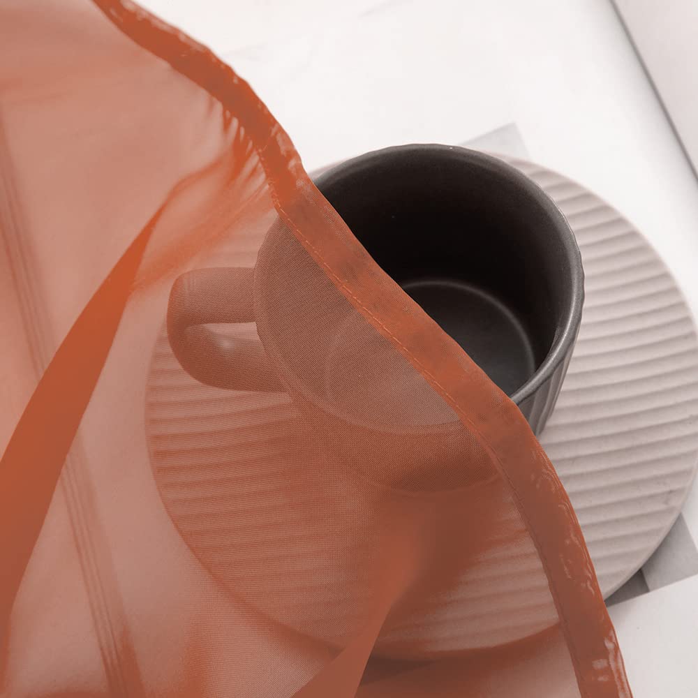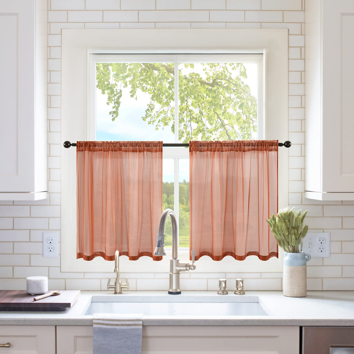 Miulee Short Sheer Curtains 30 Inch Length For Kitchen Bathroom Cafe Half Window Treatment, Terracotta Rod Pocket Tier Fall Curtains 2 Panels 29X30 Inches Long, Burnt Orange